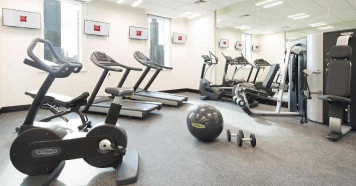 O sală de fitness cu echipamente necesare pentru o gamă variată de exerciții fizice este la dispoziția celor interesați.