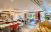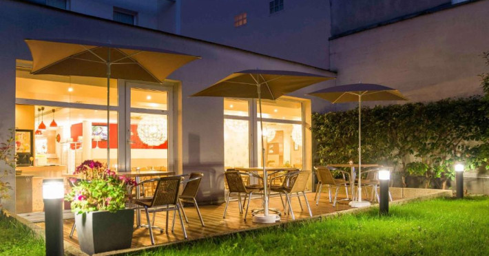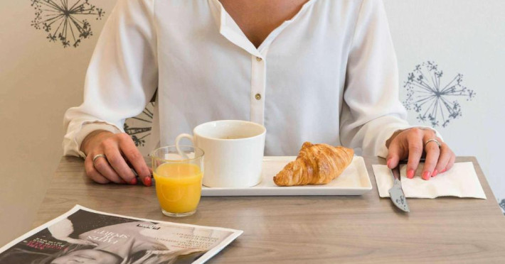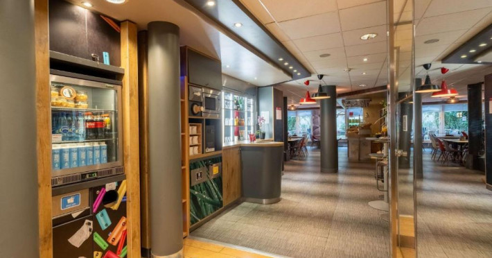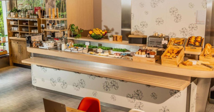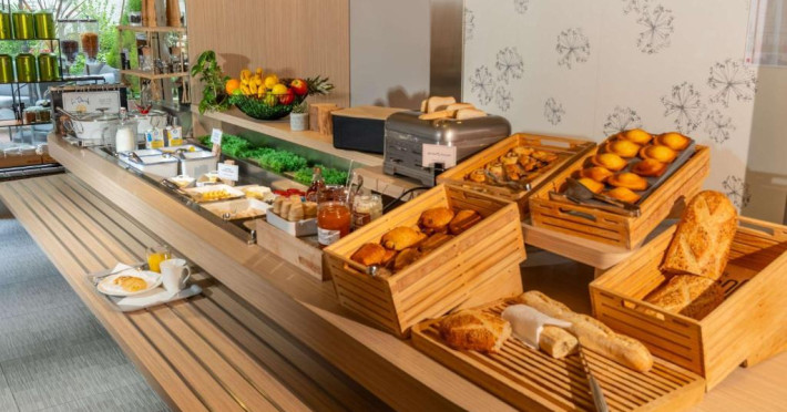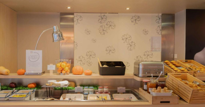 Micul dejun tip bufet include paine caldă din hriscă si struguri, produse de patiserie franceze proaspete, prăjituri, clătite, o selectie de mezeluri si branzeturi si ouă fierte. Băuturile includ suc de fructe si cafea din comert echitabil. Barul oferă o selectie de băuturi internationale si beri, dar si gustări nonstop.