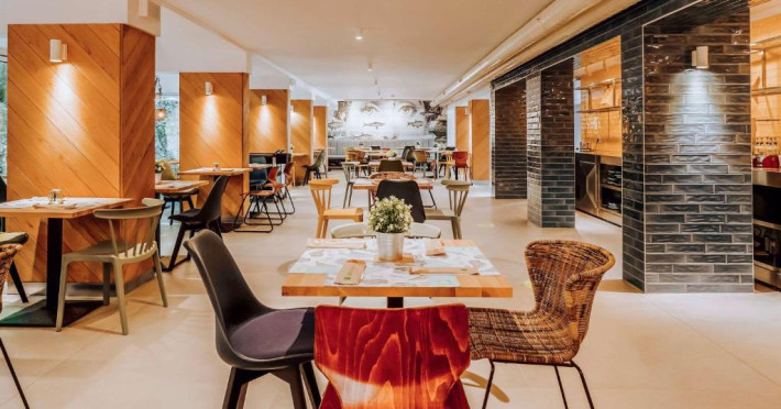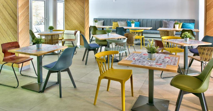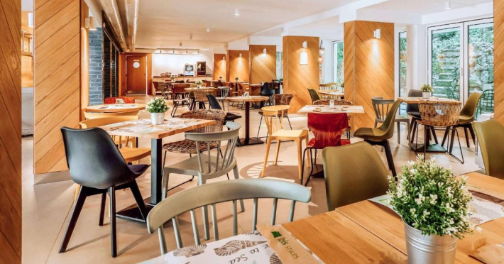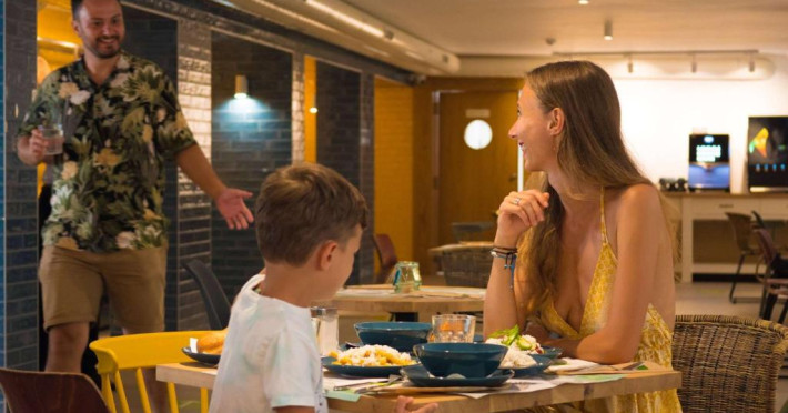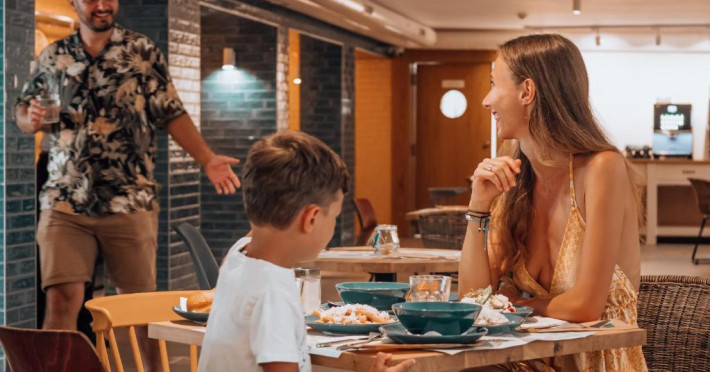 Mesele sunt pregătite și servite la restaurantul hotelului. Oaspetii pot savura băuturi la bar.