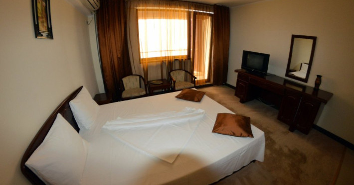 Camerele sunt dotate cu baie proprie cu cabina dus/ cada, uscator de par, TV, minibar, aer conditionat, balcon (doar la etaj), internet.
