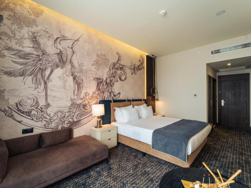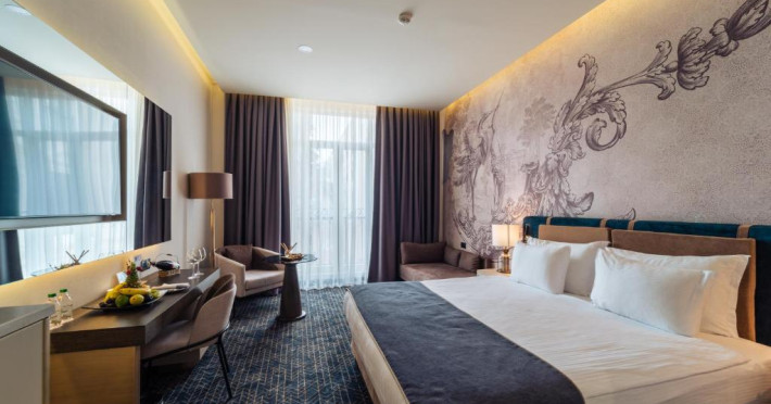 Toate camerele sunt decorate cu mobilier din lemn și au podea cu mochetă. Camerele oferă aer condiționat, birou, minibar, TV LED prin satelit și baie. In toate unitățile hotelului există WiFi gratuit.