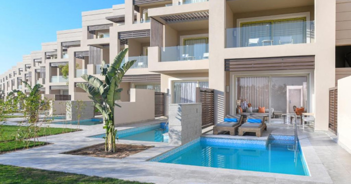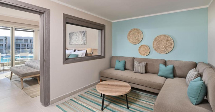 Hotelul are un numar total de 429 camere: camere standard (26mp, un dormitor, o baie, max 2+1pax), 29 camere family (52 mp, max 2+2 pax, 1 living room + 2 dormitoare, 2 bai),camere standard Quad (26mp, un dormitor cu pat matrimonial si doua paturi twin, o baie, max 3+1pax), camere Family (52mp, un living, doua dormitoare, doua bai, max 2+2pax), camere junior suit (33mp, un dormitor cu pat matrimonial, sofa si spatiu de relaxare, o baie, max 2+1pax), camere pentru persoane cu dizabilitati (26mp, special amenajate), 1 Kids suit (52mp, doua dormitoare separate cu baie), King suit (131 mp, un living si doua dormitoare, o baie cu Jacuzzi si una cu cada) si Presidential suit (213 mp, la etajul superior al hotelului, doua dormitoare si un dormitor pentru personal, living cu spatiu de servit masa si de lucru, o baie cu Jacuzzi, o baie cu cada). Toate camerele au vedere la mare sau la gradina, cu balcon sau terasa, baie cu cada, uscator de par, halate de baie si papuci, aer conditionat centralizat, telefon direct, mini bar (bauturi racoritoare, apa si bere - realimentat zilnic), seif, covor, TV satelit si canale de muzica, conexiune Wi-Fi (viteza redusa). Camerele King si Prezidential ofera concept VIP (transfer de la si catre aeroport, express check in / out, mini bar realimentat zilnic, cos cu fructe, suc natural de fructe, bere din import, curatenie in camera de doua ori pe zi, flori, halate de baie, papuci, prosoape de plaja, servicii de curatatorie, internet wireless).
