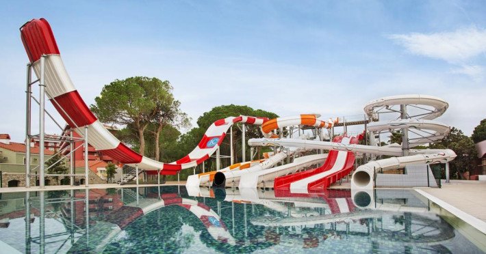 Piscine de interior si exterior pentru adulti si copii, tobogane, centru fitness, baie turceasca, sauna, teren de tenis, squash, tenis de masa, mini fotbal, volei pe plaja, mini golf. Contra cost: sporturi nautice, nocturna pentru terenul de tenis, centru Spa si Wellness, biliard.
