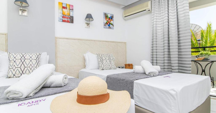 Set in Malia, 1 km from Ikaros and Kernos Beach, ICandy Sol offers accommodation with a seasonal outdoor swimming pool, free private parking, a bar and a shared lounge. Featuring family rooms, this property also provides guests with a sun terrace. The accommodation provides a 24-hour front desk, airport transfers, luggage storage space and free WiFi throughout the property.