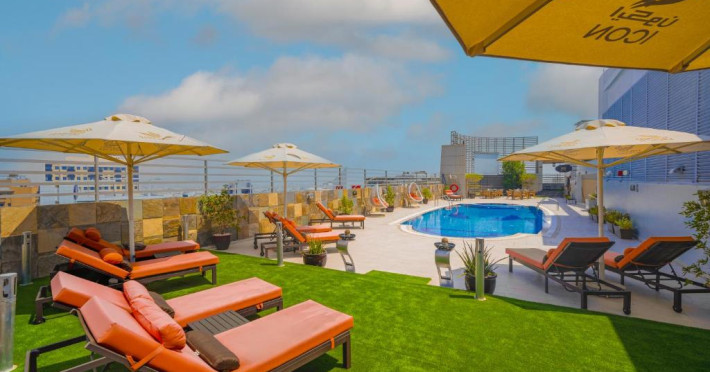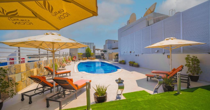 Icon Delux Hotel Apartments Al Barsha - Formerly Abidos se găsește in Dubai și sunt cazare cu WiFi gratuit, o zonă, un centru de fitness, o terasă și vedere la oraș.