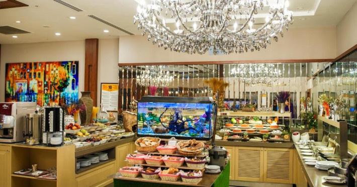 Micul dejun zilnic este servit in stil bufet deschis. De asemenea, vă puteți bucura de pranz și cină la restaurantul à la carte al hotelului.