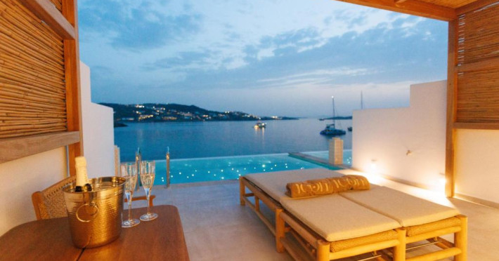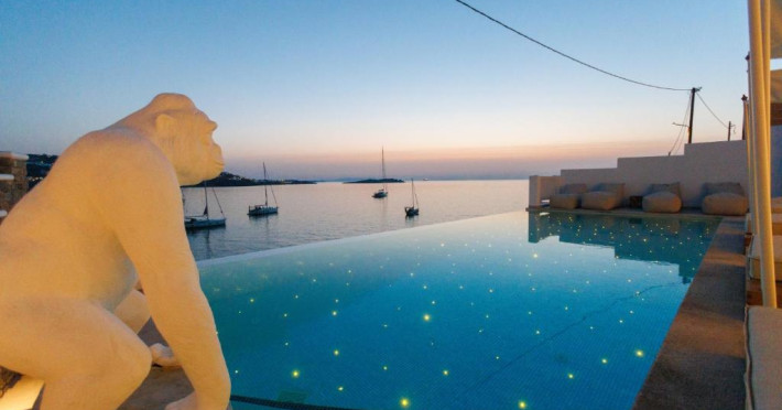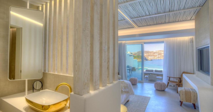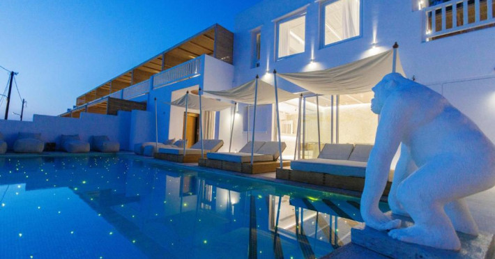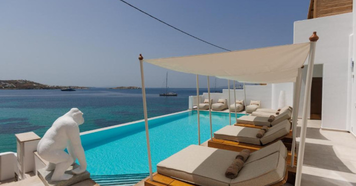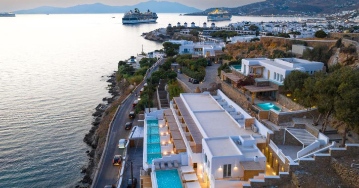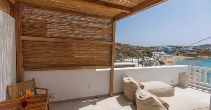 Icon Mykonos se află pe malul mării in Megali Ammos și oferă cazare de 4 stele, o piscină in aer liber sezonieră, o terasă și un bar. Situată in cartierul Mykonos City Centre, proprietatea pune la dispoziția oaspeților un restaurant. Proprietatea are o recepție deschisă non-stop, servicii de transport de la/la aeroport, depozit de bagaje și WiFi gratuit in intreaga proprietate.