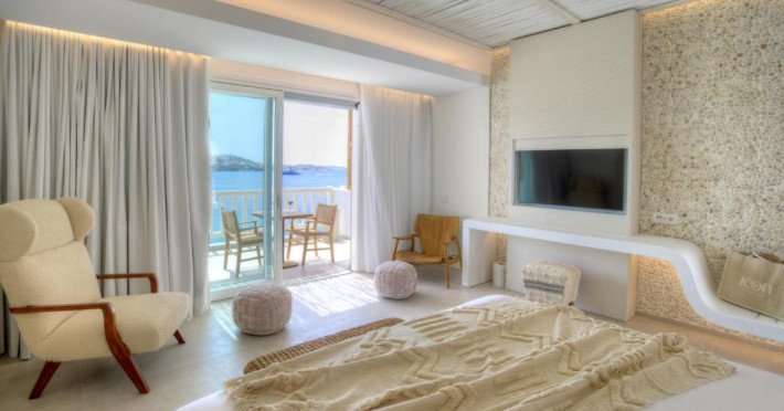 Acest hotel pune la dispoziție camere care includ aer condiționat, un birou, o cafetieră, un frigider, o cutie de valori, un televizor cu ecran plat, un balcon și o baie proprie cu duș. Baia proprie oferă articole de toaletă gratuite. La Icon Mykonos, camerele oferă lenjerie de pat și prosoape.