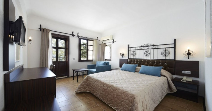 În camere există baie cu cadă sau duș ce are în dotare foehn și articole de toaletă gratuite. Camerele luminoase de la Ideal Panorama Holiday Village sunt dotate cu aer condiționat, Tv și seif. Unele camere au balcon cu vedere la mare sau la piscină. Curățenia in cameră se face zilnic.