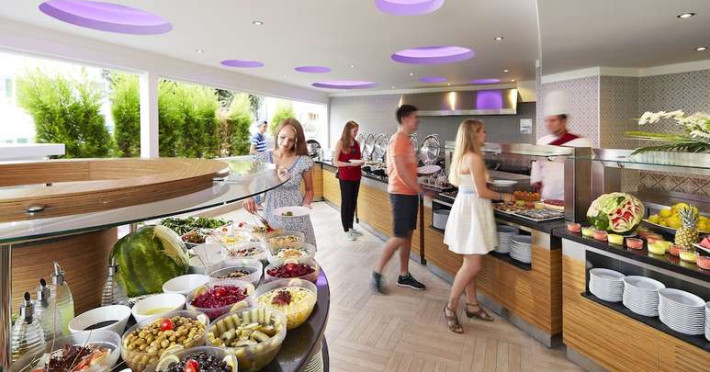 La Ideal Piccolo oaspeții au la dispoziție un restaurant care servește mâncare în stil bufet. Preparate din bucătăria internațională și turcească așteaptă să fie degustate în fiecare zi la micul dejun, prânz și cină. Masa poate fi servită atât în interior, cît si în aer liber, pe terasă, în funcție de vreme. Oaspeţii pot avea diverse băuturi răcoritoare sau alcoolice la bar.