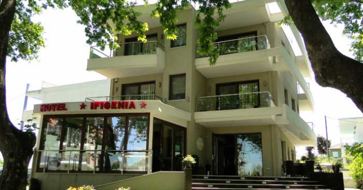 Hotelul Ifigenia este localizat in regiunea Pieria, in statiunea Leptokaria la doar 50 m de plaja. Gara Leptokarya este la 800 de metri, oraşul Larissa se află la aproximativ 60 km, satele pitorești Skotina și Litochoro sunt la 7 km iar la 15 km este satul tradițional Palaios Panteleimonas. Ca si tip de masa are Self catering. Printre facilitatile hotelului se numara: receptie, bar, parcare, lift, internet wireless gratuit in lobby. Camerele dispun de A/C centralizat, balcon, baie cu dus, uscator de par, chicineta, telefon, frigider, TV plasma,se asigura curatenie zilnica.Datorita dinamicitatii domeniului disponibilitatea ofertelor se modifica de la un moment la altul. De aceea ofertele sunt valabile in limita locurilor disponibile. Agentia nu este responsabila pentru eventualele neconcordante care pot aparea intre informatiile privind tarifele si alte detalii din site si informatiile primite in agentie. In aceste cazuri vor avea prioritate, intotdeauna, informatiile primite in agentie.
