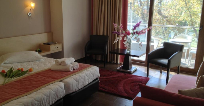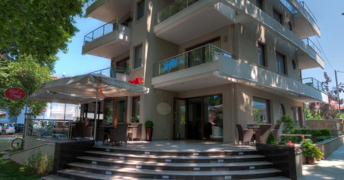 Locatie: Hotelul Ifigenia se afla in statiunea Leptokaria, pe Riviera Olimpului, la doar 50 metri de plaja. Hotelul se afla intr-o gradina inconjurata de arbori unde va puteti relaxa si bucura de o priveliste minunata. De asemenea hotelul va face tot ce ii sta in putinta pentru ca sejurul dvs sa fie unul relaxant si confortabil.Facilitati camere: Cele 7 camere ale hotelului sunt spatioase, decorate cu bun gust si dotate cu: AC, TV, internet Wi-Fi, seif, incalzire, chicineta utilata (doar pentru mic dejun, nu pentru gatit), frigider, uscator de par, baie cu dus, balcon.