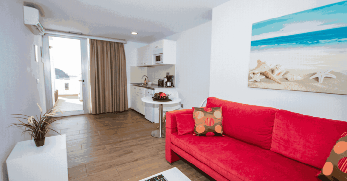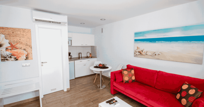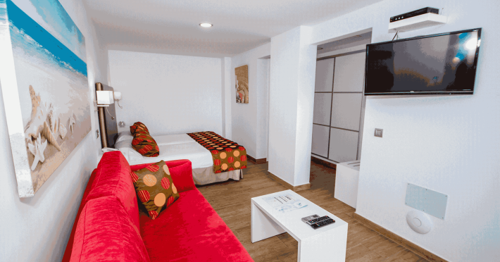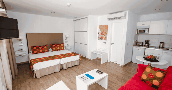 The apart hotel IG Nachosol Premium Apartaments is located approximately 1,2 km from a beach. The nearest shops you can reach within around 1,1 km, a supermarket is around 500 m away. The hotel has a reception, Wi-Fi as well as a TV lounge with satellite TV. In the outdoor area of the property you will find a pool that is open seasonally, where sun loungers and sun umbrellas are available for free. Furthermore, outside you can find a sun terrace. You can store your valuables in the safe (extra fee), and your luggage in the hotel`s storage roomn. Guests at the accommodation can get a wake-up call from the hotel personnel. In your hotel, a lot of focus is placed on sustainability. This includes among others the hotel`s own recycling bins. The hotel requires that all guests pay a deposit upon arrival. Catering As catering services the hotel offers self-catering. Distances- Discotheque: approx. 1 km
