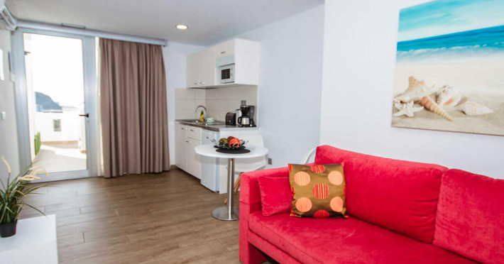 The hotel is located in Puerto Rico de Gran Canaria, Spain. In the surroundings, there are several restaurants, bars, and shops perfect for the ones who would like to explore the city. Guests will be happy to know that the nearest beach is at a walking distance. The Gran Canaria Airport is 48 km away. Each room is nicely decorated and equipped with all the essential amenities needed for a comfortable stay. There is a living space with a sofa bed, flat-screen TV and dining table, while the kitchen is equipped with a hob, fridge, electric kettle, and toaster. This property offers a swimming pool and a shared terrace with sun loungers to sunbathe and rest under the sun.The hotel is located in Puerto Rico de Gran Canaria, Spain. In the surroundings, there are several restaurants, bars, and shops perfect for the ones who would like to explore the city. Guests will be happy to know that the nearest beach is at a walking distance. The Gran Canaria Airport is 48 km away. Each room is nicely decorated and equipped with all the essential amenities needed for a comfortable stay. There is a living space with a sofa bed, flat-screen TV and dining table, while the kitchen is equipped with a hob, fridge, electric kettle, and toaster. This property offers a swimming pool and a shared terrace with sun loungers to sunbathe and rest under the sun.