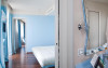 Camerele sunt spatioase si elegante si au podea cu parchet. Toate au decor bluemarin deschis, precum si baie privată. Unele camere au vedere la mare.