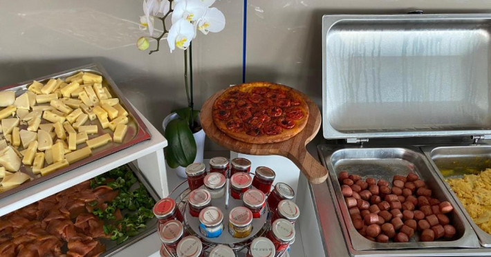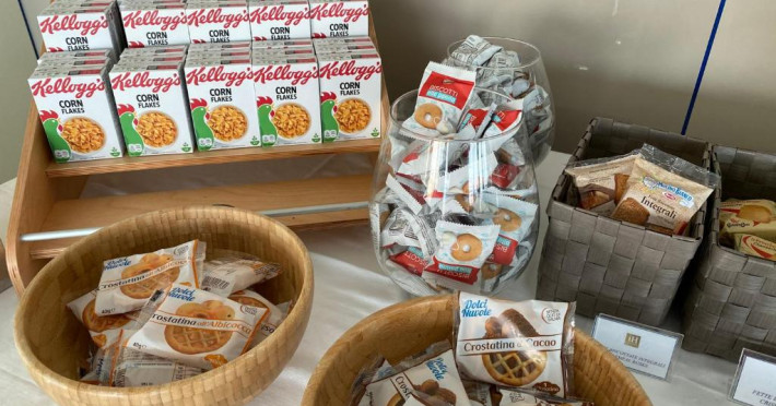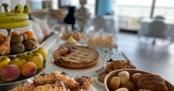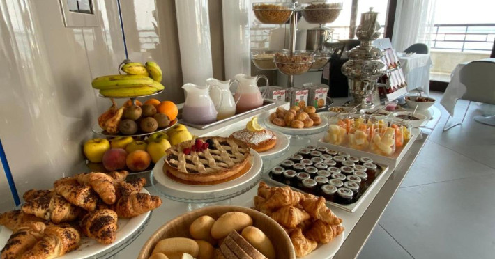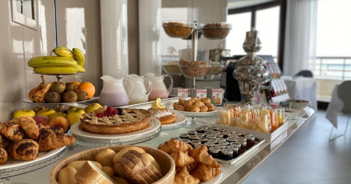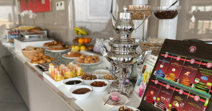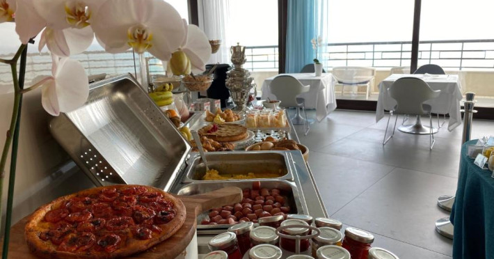 Micul dejun este oferit zilnic in sala de mese si include produse dulci si sărate. Restaurantul de la ultimul etaj, Ristorante La Terrazza, oferă vedere panoramică și preparate din bucătăria internațională și mediteraneană.