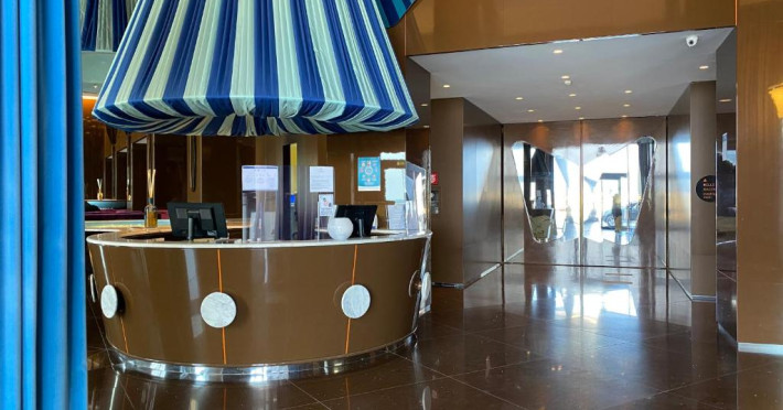 Oaspetii de la Grande Albergo Delle Nazioni se pot destinde chiar si numai admirand vederea la mare si la oras de pe terasa spatioasă.