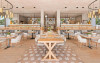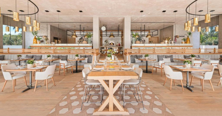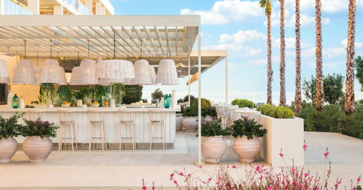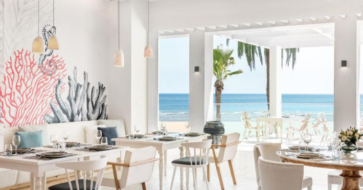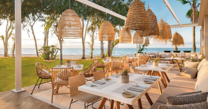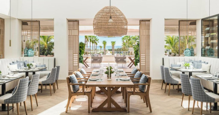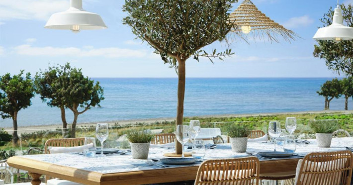 Ikos Andalusia găzduiește un restaurant care servește mancăruri din bucătăria frantuzească, grecească și italiană. La cerere, oaspeții pot beneficia și de preparate vegetariene și fără gluten.