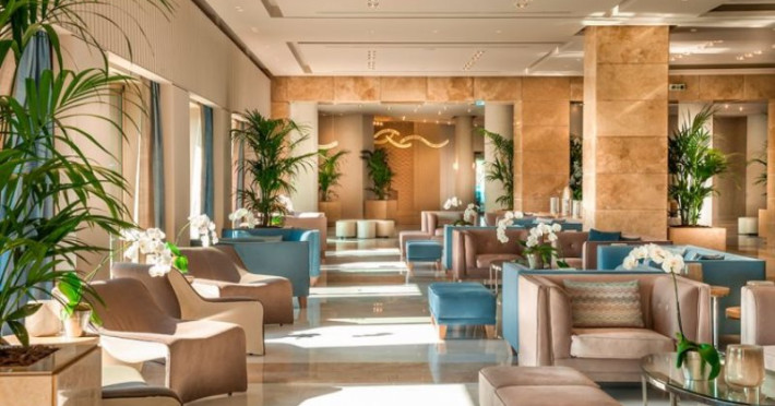 Complexul dispune de:piscina exterioara & piscina interioara, bar, bar pe plaja, restaurant, taverna, Centru SPA: piscina interioara incalzita, piscina exterioara, jacuzzi, baie turceasca (hamam), sauna, baie de gheata, masaj, salon de coafura, salon de manichiura & pedichiura, produse cosmetice by Anne Semonin, studio de fitness (sala de gimnastica), 6 camere de tratament (inclusiv o suita pentru doi)., sala de conferinte, gradina, supermarket, miniclub, loc de joaca, minigolf, teren de tenis, posibilitatea de practicare a sporturilor nautice, receptie deschisa 24 de ore, plaja proprie cu sezlonguri & umbrele, lift in hotel, magazin de suvenire, internet corner & internet WiFi (contra cost), volei pe plaja, biliard, darts, sala de fitness, parcare.