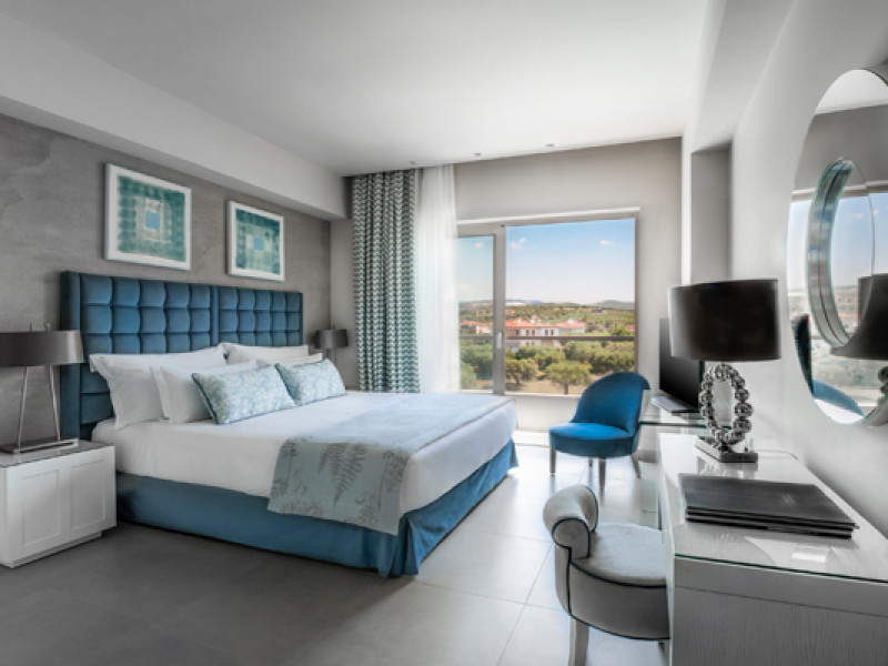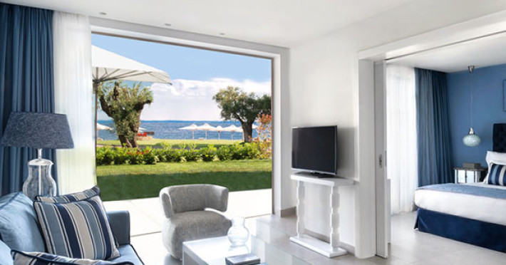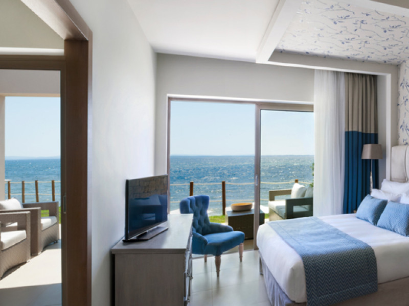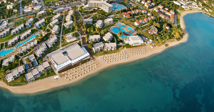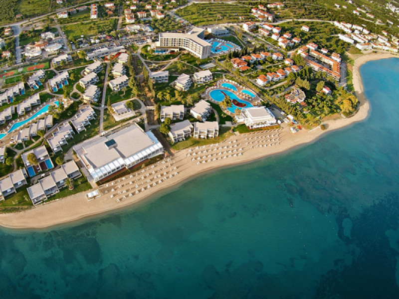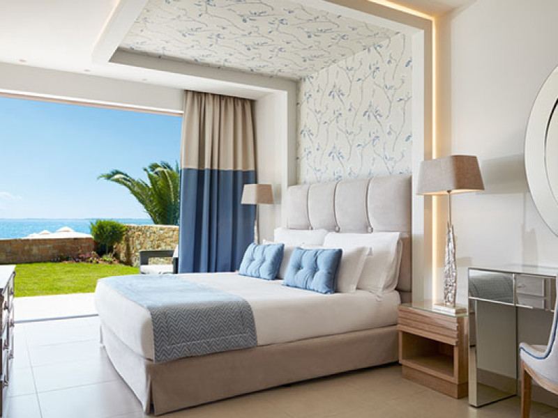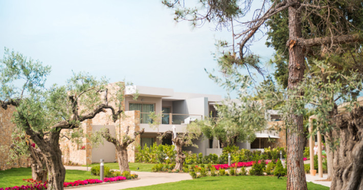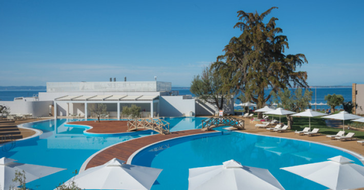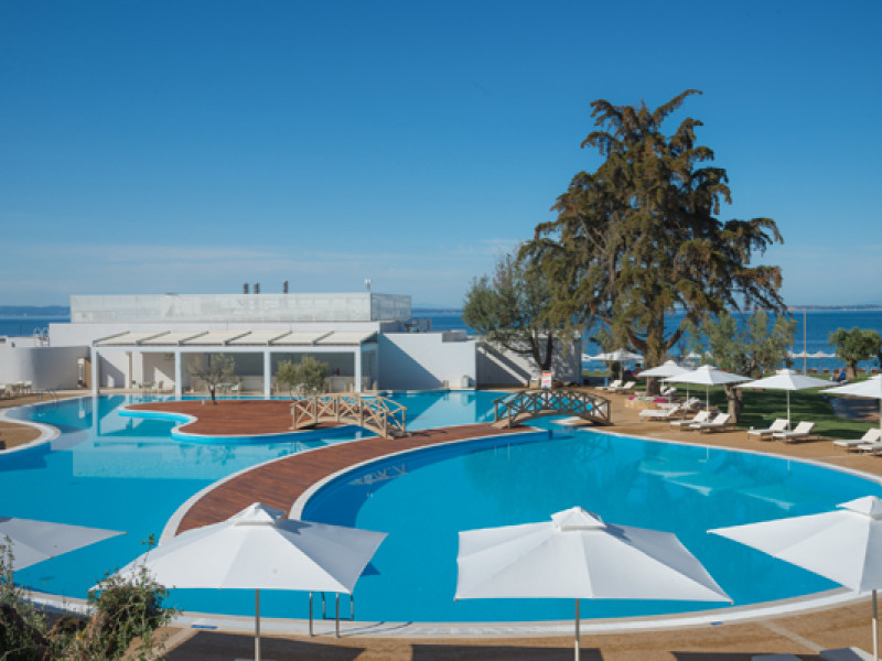 Set in 22 acres of evergreen landscape, this unique property is surrounded by immaculate lawns and olive trees leading to a stunning 450m long beach with azure waters. This hotel offers several pools, lots of bars (main bar, beach bar, pool bar,etc), several restaurants (4 a-la-carte restaurants, wine cellar, etc), SPA, tennis courts, lots of activities for children and also for adults.Full description