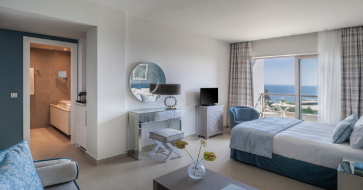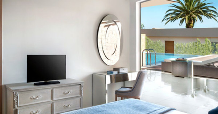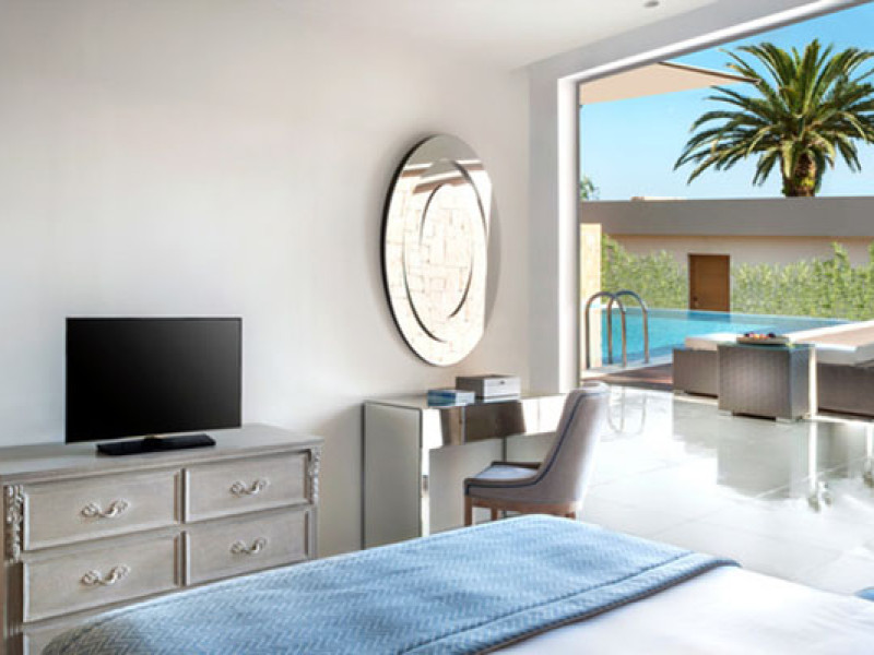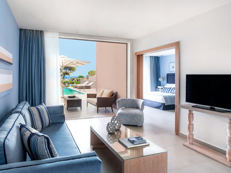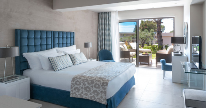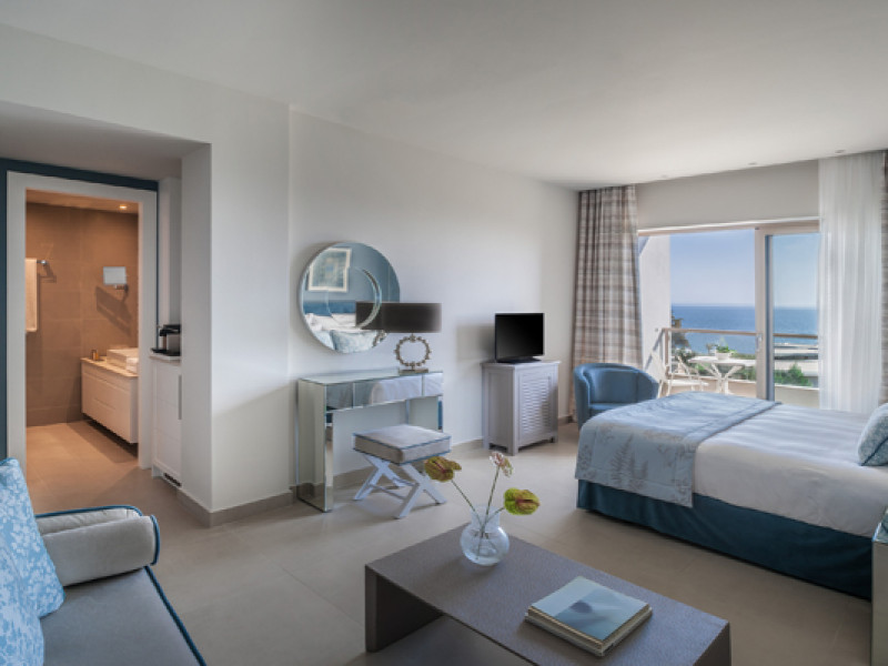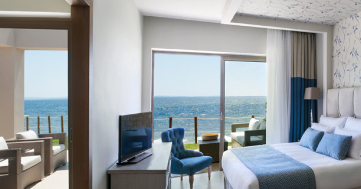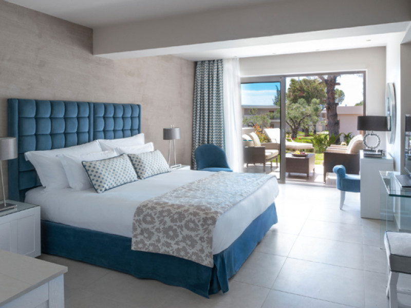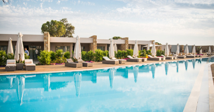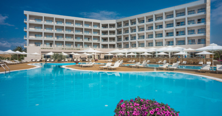 Set in 22 acres of evergreen landscape, this unique property is surrounded by immaculate lawns and olive trees leading to a stunning 450m long beach with azure waters. This hotel offers several pools, lots of bars (main bar, beach bar, pool bar,etc), several restaurants (4 a-la-carte restaurants, wine cellar, etc), SPA, tennis courts, lots of activities for children and also for adults.Full description