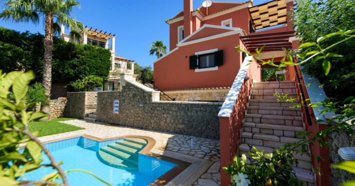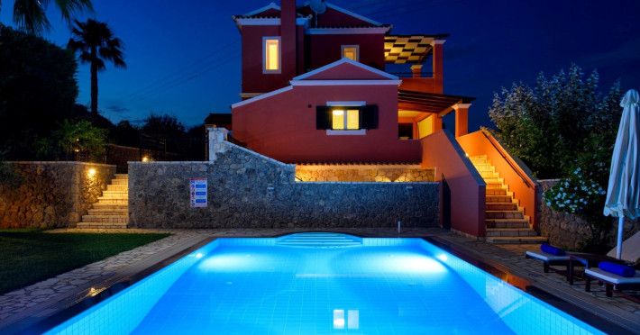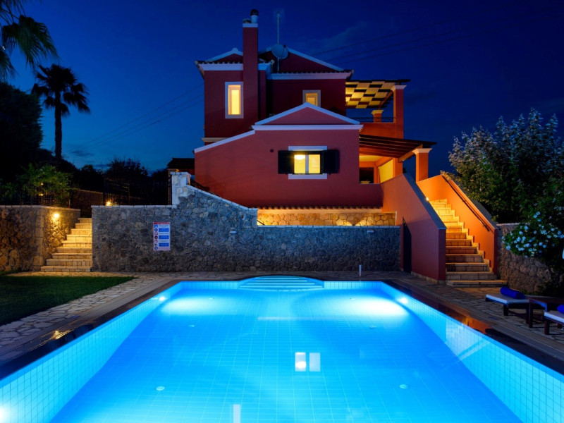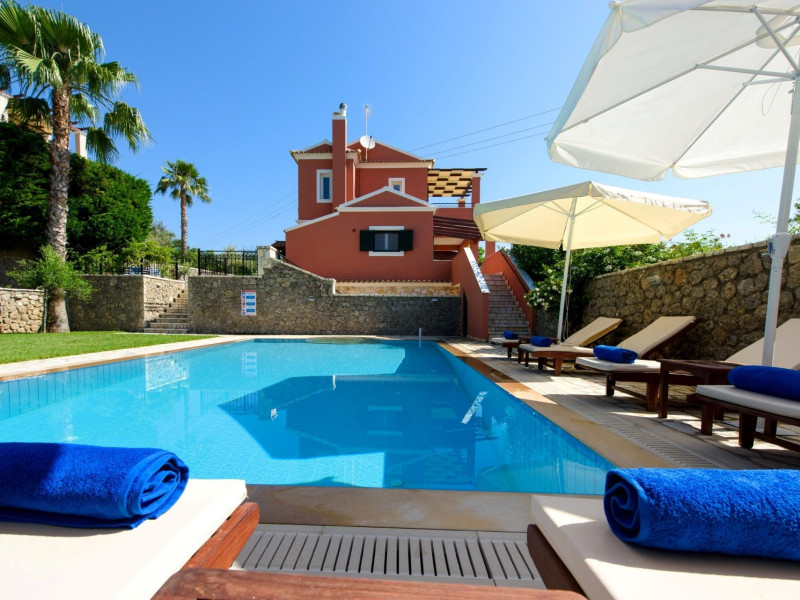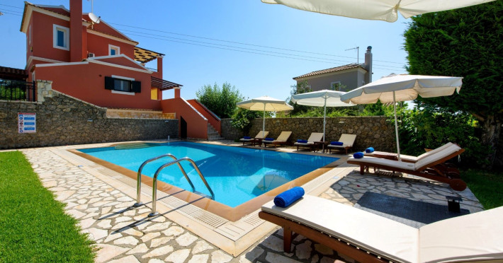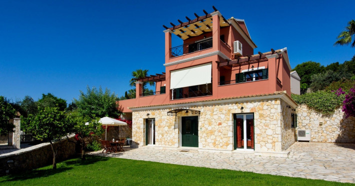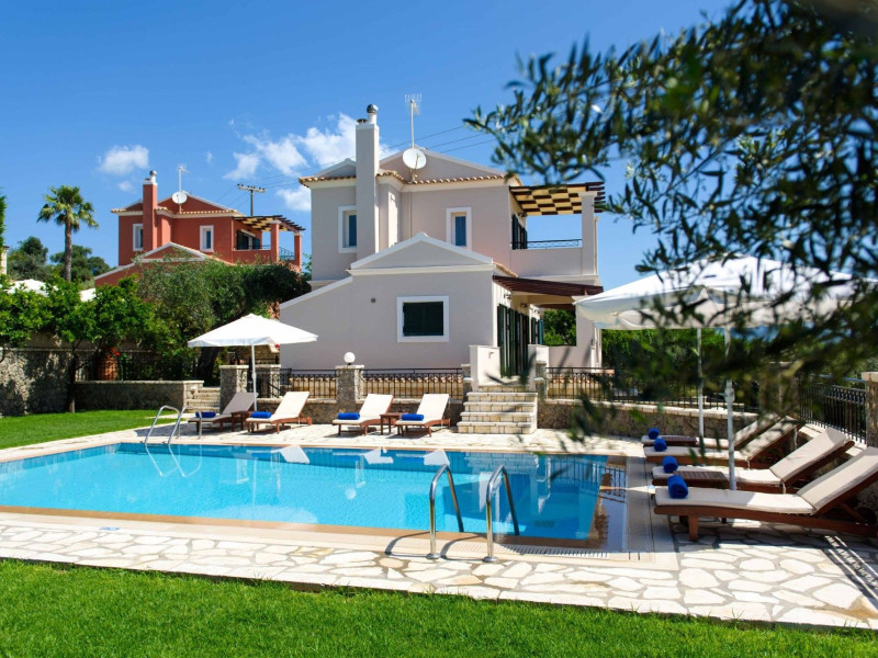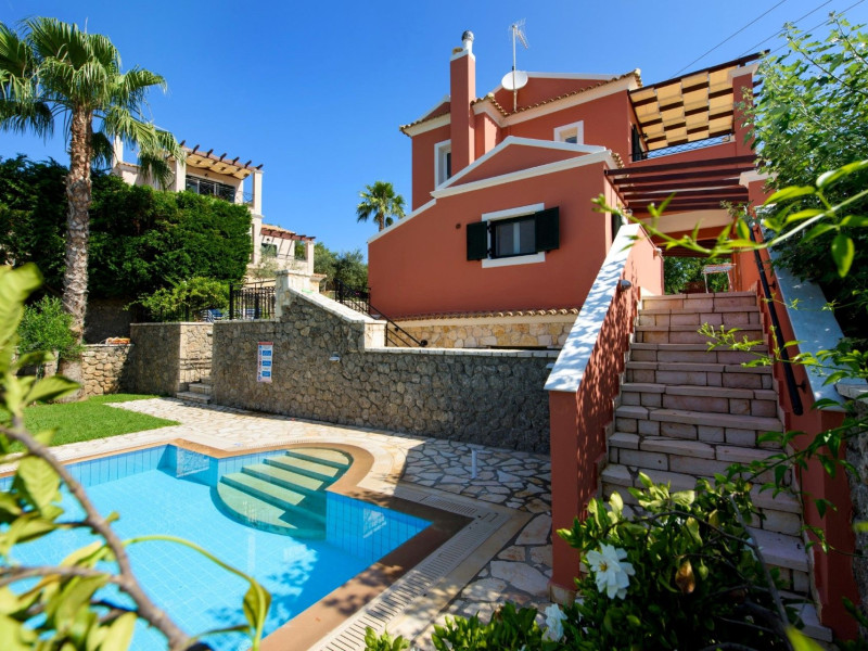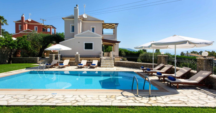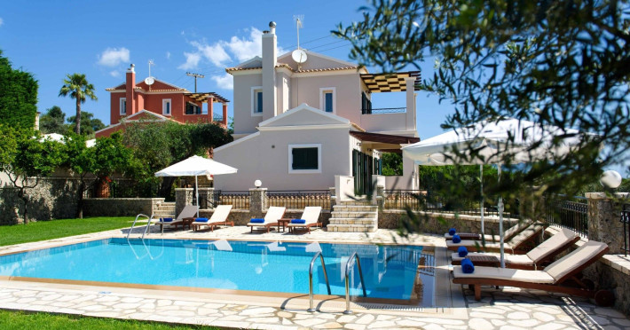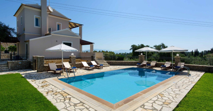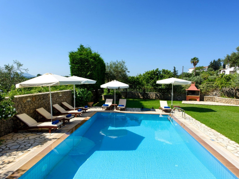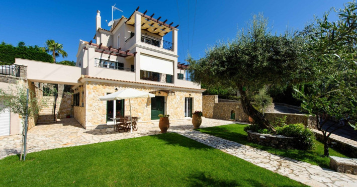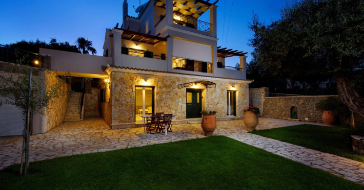 The villa and the country estate in Dassia Corfu offer a place where you can relax and settle down. The luxurious villas are suitable for 2-10 persons and offers anything a guest could wish for. Complemented by 4 separate bedrooms, living room, bathroom, fully equipped kitchen and dining area. The interior and the gardens reflect the peace and space the surroundings offer. The terraces offer a wonderful view of the green hills.