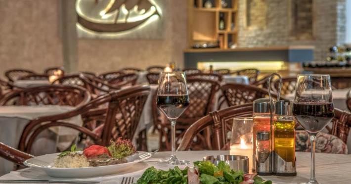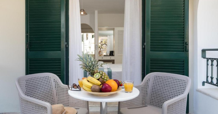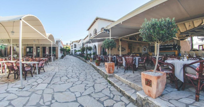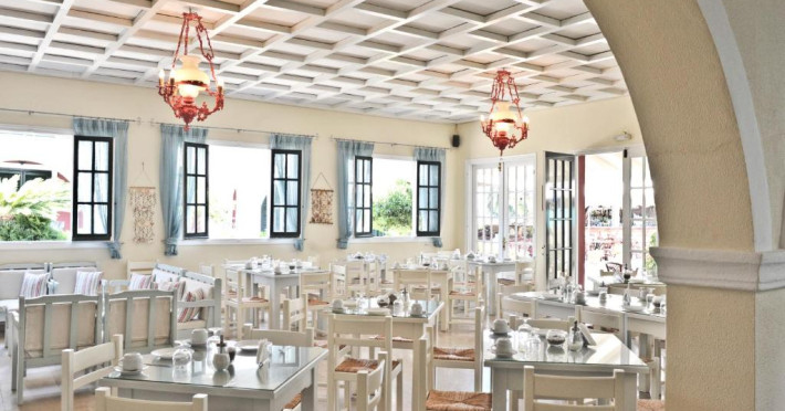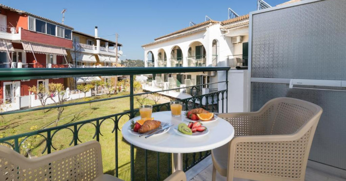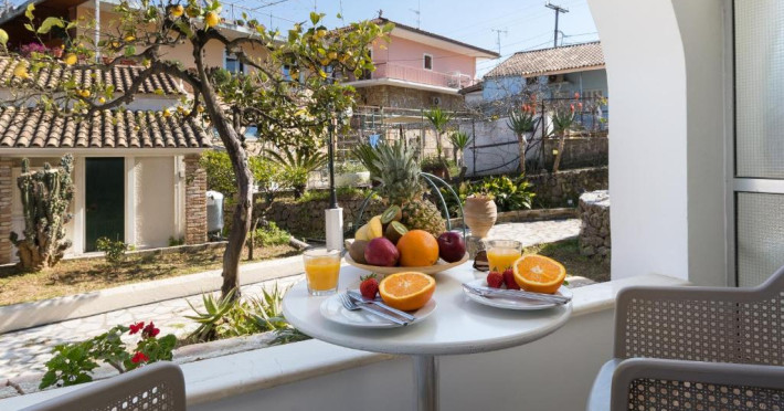 Restaurantul hotelului servește preparate din bucătăria grecească și internațională, iar terasa oferă priveliști frumoase spre grădină. Poziționarea excelentă permite accesul facil la tavernele și magazinele din Gouvia, iar orașul Corfu se află la doar 8 km distanță.