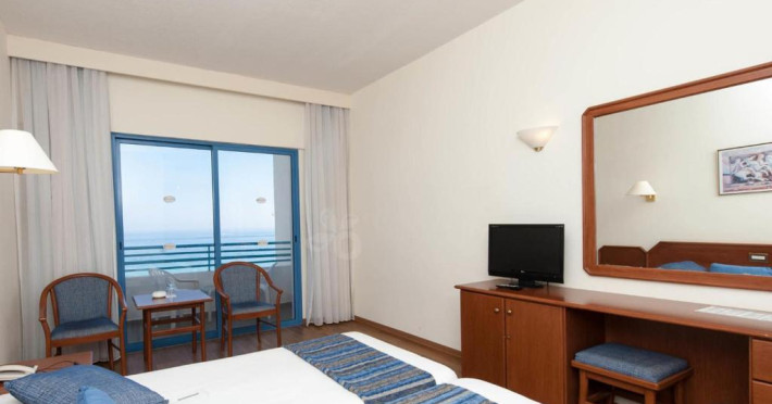 Camerele luminoase de la Iliada Beach Hotel sunt dotate cu aer condiționat și Tv cu canale prin satelit. Fiecare cameră dispune de minibar. Oaspeții pot solicita serviciul de room service pentru a servi masa sau diverse băuturi. Oaspeții au acces la serviciul Wi-fi în camere contra cost. În camere există baie cu cadă sau duș ce are în dotare foehn și articole de toaletă gratuite. Curățenia in cameră se face zilnic.