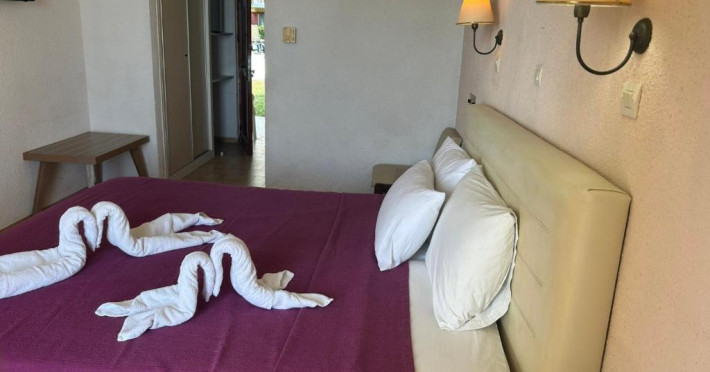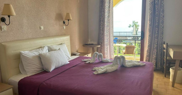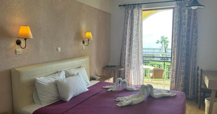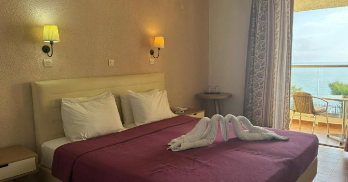 Cazare confortabilă: Camerele sunt dotate cu aer condiționat, băi private, balcoane cu vedere la mare și facilități moderne, cum ar fi televizoare cu ecran plat și birouri. Facilitățile suplimentare includ un bar la piscină, o zonă de relaxare in aer liber și un birou de turism.