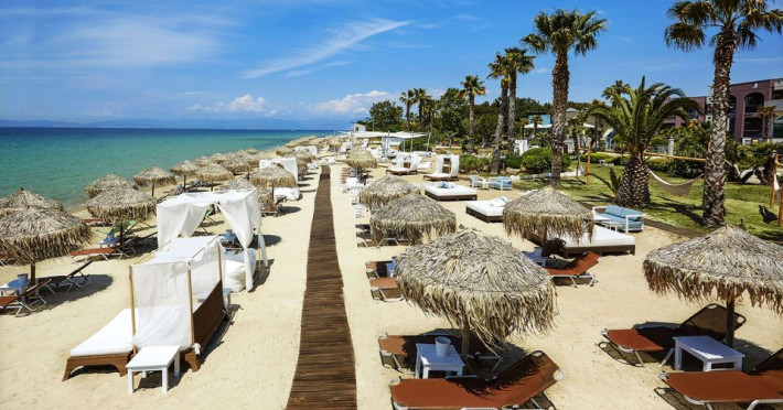 Welcome to Ilio Mare Beach Hotel in Dasillio Prinou, Thasos, Greece Ilio Mare Seaside 5-star Resort in Thassos island emerges through the tropical palm trees and the turquoise waters of its golden coast. Enter your summer capsule of tranquility with an excellent level of services; ideal for a family holiday, beloved for its romantic atmosphere and modern style, popular for its elegant luxury and unsurpassed beauty of the nature surrounding it. 137 elegant Rooms and Suites artfully combined and inspired by the colonial architecture. Amazing cascades, falling into the hotels pools, blossomed gardens, tropical vegetation with towering palm trees and purple sunsets over the Aegean Sea, compose the backdrop to the perfect summer holidays. Ilio Mare Seaside Resort is the perfect hide away, inside the lush vegetation and a stoneâs throw from the beach, for an unforgettable summer stay. Introducing two restaurants and three bars with a variety of unique flavors, rejuvenating spa services, Sports courts and modern facilities for the safe entertainment of children, exceptional infrastructure with facilities suitable for wedding receptions and ceremonies, meetings-incentives-congresses-events, active experiences and an enchanting beach.Datorita dinamicitatii domeniului disponibilitatea ofertelor se modifica de la un moment la altul. De aceea ofertele sunt valabile in limita locurilor disponibile. Agentia nu este responsabila pentru eventualele neconcordante care pot aparea intre informatiile privind tarifele si alte detalii din site si informatiile primite in agentie. In aceste cazuri vor avea prioritate, intotdeauna, informatiile primite in agentie.