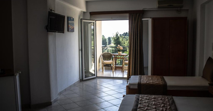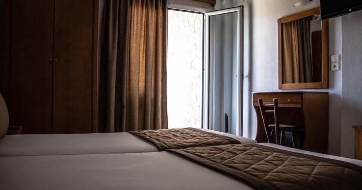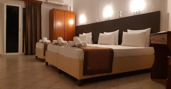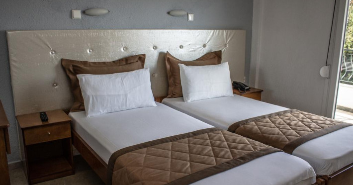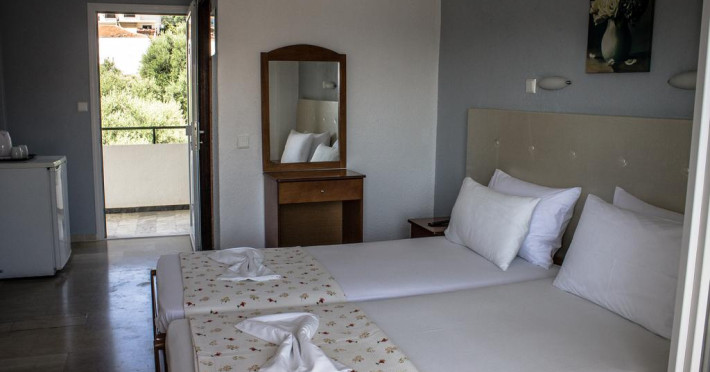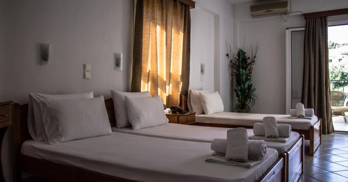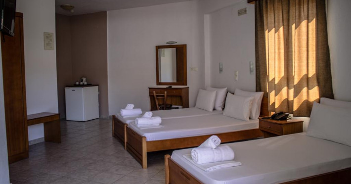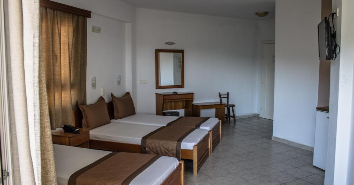 Camerele au balcon cu masă și scaune unde pot fi petrecute momente de relaxare. Fiecare cameră dispune de cană-fierbător. Camerele confortabile de la Ilios Hotel sunt dotate cu pardoseală de gresie/ marmură, aer condiționat, Tv și seif. Oaspeții au acces gratuit la serviciul Wi-fi în camere. Curățenia in cameră se face zilnic. Fiecare unitate de cazare are frigider. Proprietatea oferă camere pentru familie cu o suprafață mai mare și un număr mai mare de paturi față de cele standard.