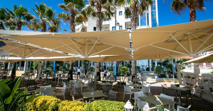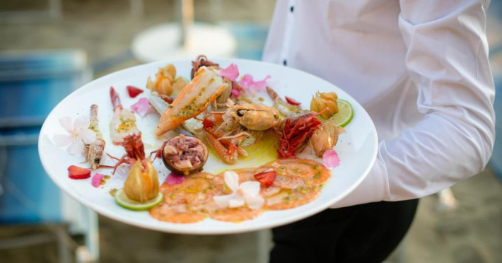 Micul dejun este servit in fiecare zi in restaurantul hotelului. Restaurantul are o terasă cu vedere la mare si la plaja privată. Pe plajă există si un loc de joacă pentru copii.