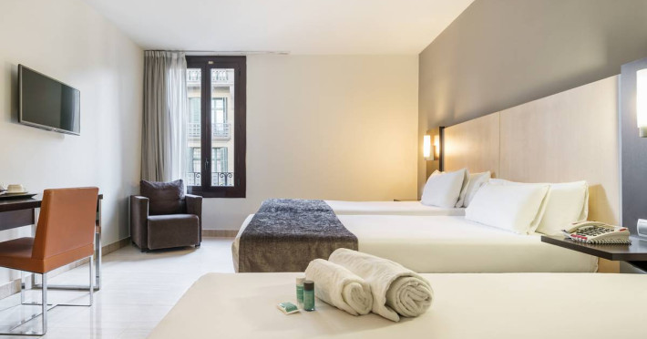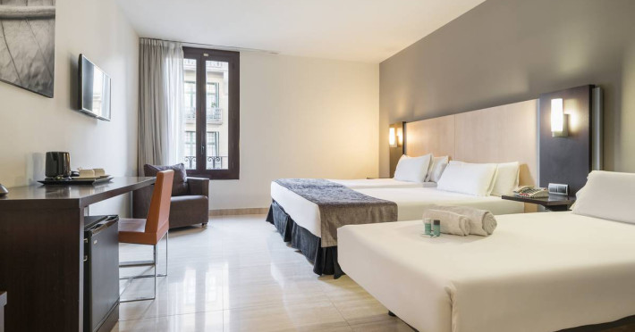 Comfortable and modern, this hotel is in a prime location at the heart of Barcelonas Gothic Quarter, a few metres away from the Cathedral and the Palau de la Música and just a few minutes from the Borne area, famous for its restaurant offering, Bohemian atmosphere and elitist style. The surrounding area is filled with delightful restaurants, bars and shops. Scores of other attractions are easily reached on foot within 5 minutes and the hotel is close to public transportation, facilitating access to the whole city.. This hotel is located in the Gothic Quarter of Barcelona, just 5 minutes from Plaza Catalunya. In five minutes on foot you can reach various tourist attractions, such as the cathedral or the port. There are a number of shops, bars and restaurants in the area around 50-100 m away. The beach is 2 kilometers away. Links to the public transport network are to be found within a few paces of the hotel, providing guests with easy access to the city center. . The rooms are equipped with bathroom, radio and Internet access. They also have central heating.Datorita dinamicitatii domeniului disponibilitatea ofertelor se modifica de la un moment la altul. De aceea ofertele sunt valabile in limita locurilor disponibile. Agentia nu este responsabila pentru eventualele neconcordante care pot aparea intre informatiile privind tarifele si alte detalii din site si informatiile primite in agentie. In aceste cazuri vor avea prioritate, intotdeauna, informatiile primite in agentie.