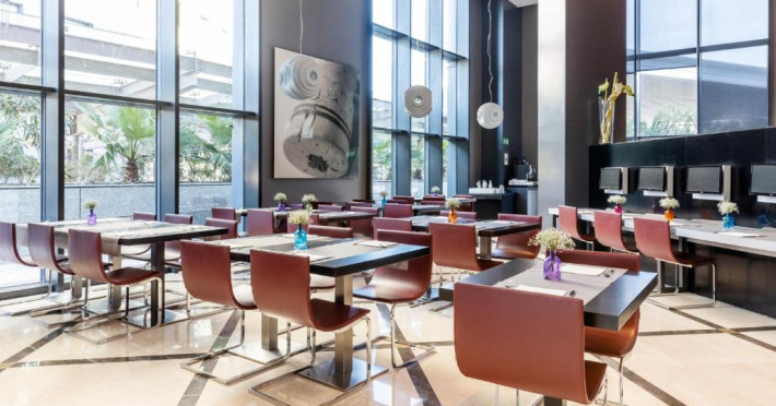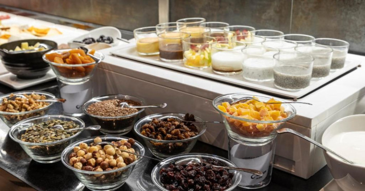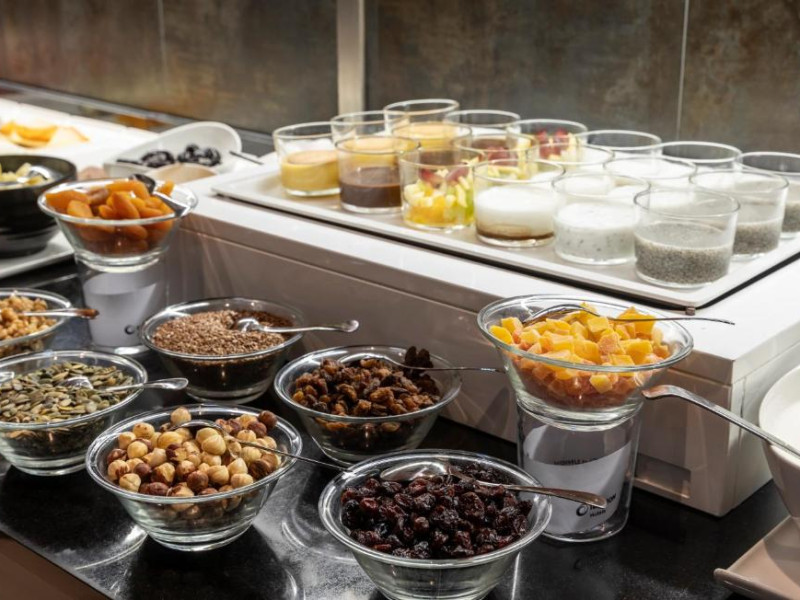 Zilnic este servit un mic dejun variat, iar pentru pranz și cină sunt disponibile meniuri fixe și à la carte. Există și produse speciale pentru oaspeții celiaci și intoleranți la alimente. Room service este disponibil in program limitat.