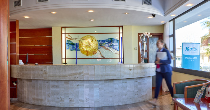 The hotel Hotel Ilusion Markus & Spa is located approximately 250 m from a beach. The nearest restaurants and bars can be found within 200 m. The old town is around 25 km away. The nearest shops you can reach within around 200 m, a supermarket is just a few metres away from the hotel. Nearby there is a disco which offers entertainment in high season. On the beach are beach towels available. The seasonally air-conditioned, GPS-verified hotel is equipped with a 24h reception (check-in is possible around the clock), a lobby bar, Wi-Fi, internet access, 2 lifts, a jacuzzi, showers and changing rooms, a first aid kit as well as a TV lounge with satellite TV. In the outdoor area of the property you will find a seasonally heated and supervised pool that is open seasonally, where sun loungers, sun umbrellas and pool towels are available for free. There is also a separate children's pool with a non-swimming area. Furthermore, you can relax outdoors on a terrace. Inside the hotel you can use a heated indoor pool. You can store your valuables in the safe (extra fee), and your luggage in the hotel`s storage room. In addition, the hotel Hotel Ilusion Markus & Spa is video-monitored 24h a day. For your entertainment, the hotel offers a library/reading room. For very young guests, kid`s chairs, highchairs and cots can be provided. For the smallest children prams can be rented in the hotel. There is also a laundry service available at an additional cost to customers as well as an ironing service. Ironing equipment can also be borrowed at the hotel. If necessary, you can contact the medical centre at any time (for a fee). Guests at the accommodation can get a wake-up call from the hotel personnel. The energy supply is 220 and 240 Volts. If you want to explore the holiday region, you can use the car rental service close to the hotel (extra fee). At the reception, tickets are offered for excursions in the area. For guests on their honeymoon, the hotel has special offers such as champagne, sparkling wine or a basket of fruit in the room. In your hotel, a lot of focus is placed on sustainability. This includes the hotel`s own recycling bins, the provision of soap and shampoo dispensers, organic food and ecological meals, a central room air-conditioning and environmentally-friendly cleaning. That is why the hotel Hotel Ilusion Markus & Spa was also awarded a sustainability certificate. The hotel requires that all guests pay a deposit upon arrival. American Express, Euro/Master Card and Visa are accepted as means of payment. Due to its barrier-free facilities , such as a sliding door in the entrance area, an automatic hotel door, a hotel door that can be opened manually, barrier-free entrances, wheelchair accessible rooms, a wheelchair accessible lift and wheelchair-accessible bathrooms, the hotel is also suitable for wheelchair users. Catering As catering services the hotel offers all-inclusive, half board, full board and breakfast only. Breakfast is offered continental or from the buffet. Lunch and dinner are also served from the buffet with starters, salads and desserts. Half board includes breakfast and dinner. When booking half board plus, selected imported spirits (limited) are included. All Inclusive Light includes local alcoholic beverages. As part of the all-inclusive service, water (24h) as well as coffee and tea (24h) are available at no extra charge. For the meals, there are a buffet restaurant (gluten-free and vegetarian dishes) and a bar as well as the cafeteria. The drinks menu of the hotel includes water, soft drinks, coffee and tea, beer and wine. For dinner, guests are asked to wear appropriate clothing in the restaurant. Distances- Nearest town: approximately at 57 km