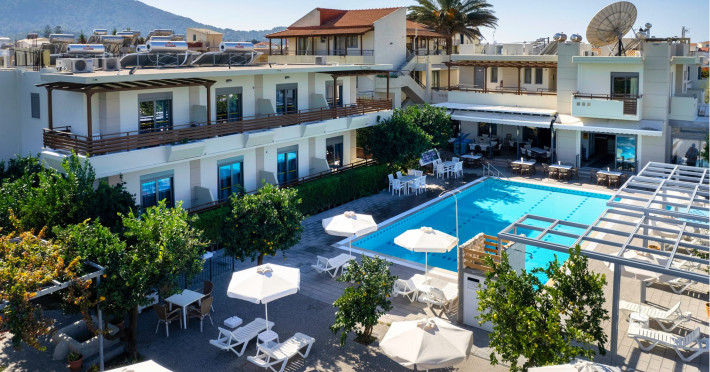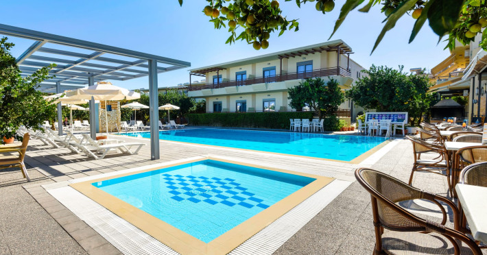 Ilyssion Holidays Hotel is a family hotel, located in a peaceful and quiet area within the community of Ialyssos, Rhodes, Greece. This family hotel proudly offers hotel services within a very friendly and family-like atmosphere. The hotel is well placed close to the sea (approximately 650 m), between Rhodes City and Rhodes Airport "Diagoras". It is a lovely and quiet place, overwhelmed with orange-trees and garden surroundings. Shops, bars and restaurants are located within a distance of approximately 200m from it. In addition to the above, the beach area offers many water sports possibilities, such as kitesurfing, windsurfing and jet skiing. Facilities: A large swimming pool, including a separated small children's pool and a comfortable open terrace with free sun beds. Soft mattresses are available for the sun beds, with a small extra charge. A fully-equipped Bar offers a large variety of coffees, cocktails, long drinks and other refreshments, from 08.00 a.m. till late 24.00 p.m. A Snack Bar - Restaurant offers breakfast from 07.00 a.m. till 10.30 a.m., and a large variety of snacks, lunch and dinner till 21.00 p.m. (Home-Made Greek Cousin). A comfortable Lounge-Satellite TV-Room, and a cozy and pleasant Play-Room, with air hockey, billiards and pinball games, are available for all our guests. Reception Services are available from 07.00 a.m. till late 24.00 p.m., although in an event of an emergency, the hotel owners family is available any time, living next to it, on site. Internet Access Point, Wi-Fi Internet Access, Air-Conditioning and Safety Box services are available with a relevant small extra charge. Free Parking Area is available next to it. Ilyssion Holidays Hotel promises to provide an unforgettable experience to guests seeking a peaceful retreat in comfort and Greek style.Ilyssion Holidays Hotel is a family hotel, located in a peaceful and quiet area within the community of Ialyssos, Rhodes, Greece. This family hotel proudly offers hotel services within a very friendly and family-like atmosphere. The hotel is well placed close to the sea (approximately 650 m), between Rhodes City and Rhodes Airport "Diagoras". It is a lovely and quiet place, overwhelmed with orange-trees and garden surroundings. Shops, bars and restaurants are located within a distance of approximately 200m from it. In addition to the above, the beach area offers many water sports possibilities, such as kitesurfing, windsurfing and jet skiing. Facilities: A large swimming pool, including a separated small children's pool and a comfortable open terrace with free sun beds. Soft mattresses are available for the sun beds, with a small extra charge. A fully-equipped Bar offers a large variety of coffees, cocktails, long drinks and other refreshments, from 08.00 a.m. till late 24.00 p.m. A Snack Bar - Restaurant offers breakfast from 07.00 a.m. till 10.30 a.m., and a large variety of snacks, lunch and dinner till 21.00 p.m. (Home-Made Greek Cousin). A comfortable Lounge-Satellite TV-Room, and a cozy and pleasant Play-Room, with air hockey, billiards and pinball games, are available for all our guests. Reception Services are available from 07.00 a.m. till late 24.00 p.m., although in an event of an emergency, the hotel owners family is available any time, living next to it, on site. Internet Access Point, Wi-Fi Internet Access, Air-Conditioning and Safety Box services are available with a relevant small extra charge. Free Parking Area is available next to it. Ilyssion Holidays Hotel promises to provide an unforgettable experience to guests seeking a peaceful retreat in comfort and Greek style.
