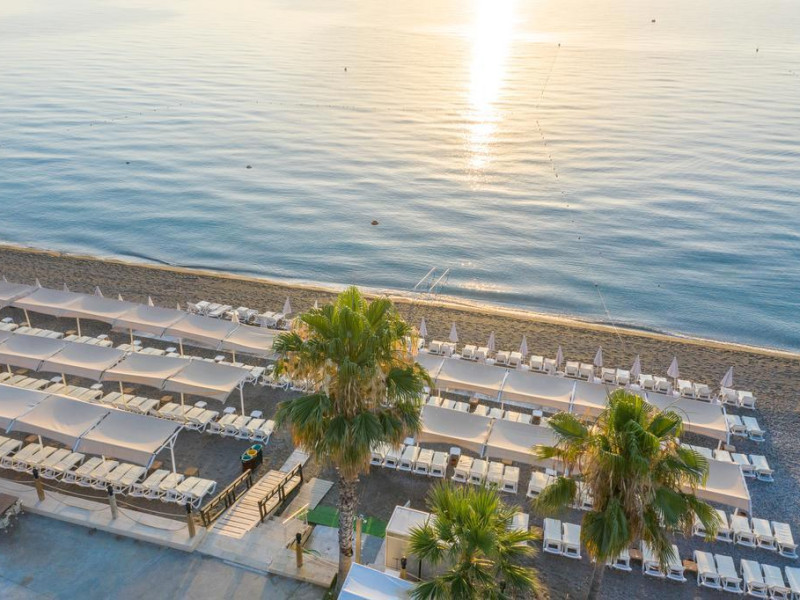 Este situat la aproximativ 100 m de mare, plaja fiind larga, cu nisip fin si