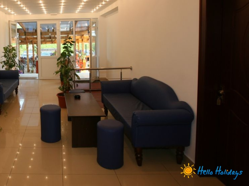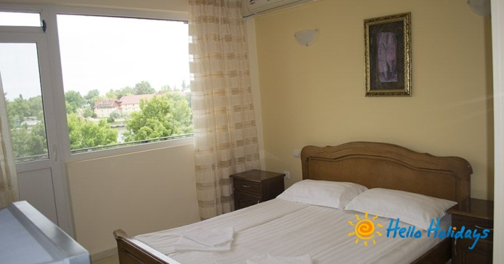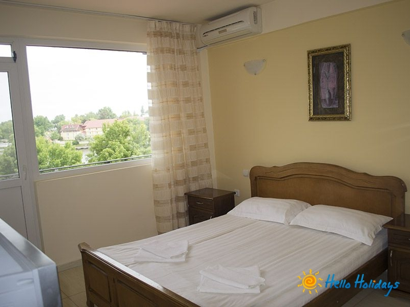 frigider si aer conditionat, pardoseli de gresie cu covorase si tamplarie PVC. 20 de camere dispun de vedere la mare.