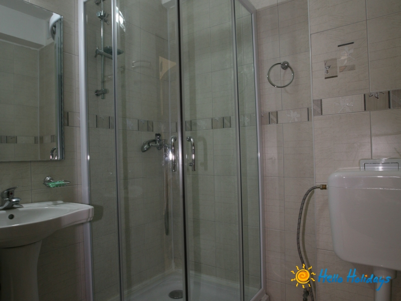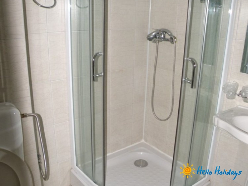 Camere: Hotelul are camere duble cu grup sanitar propriu si cabina de dus, pardoseli de gresie