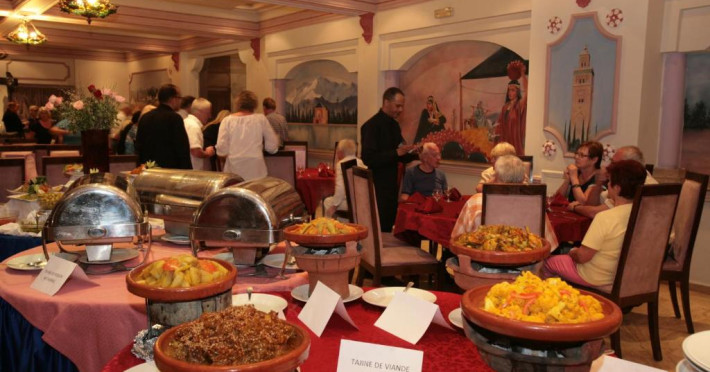 Restaurantul Le Mont-Royal servește mancăruri internaționale și marocane. Oaspeții pot savura cocktailuri pe terasa de pe acoperișul Hotelului Imperial Holiday, cu vedere panoramică la Marrakech. De asemenea, aceștia se pot relaxa la barul Niagara Falls de langă piscină sau se pot bucura de programul de divertisment.