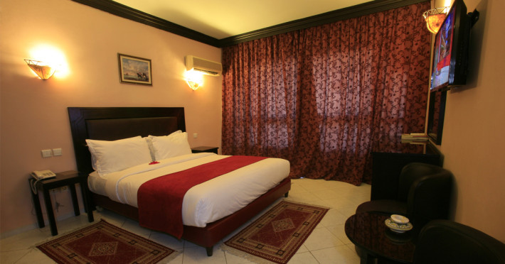 The hotel Imperial Holiday Hotel & Spa Marrakech is just a few steps from the city centre. The hotel is equipped with a 24h reception, Wi-Fi, a hairdresser, a jacuzzi, parking spaces as well as a TV lounge. In the outdoor area you will find a garden as well as a heated pool (open all year), where sun umbrellas are available for free. There is also a children's pool. Furthermore, outside you can find a terrace. Inside the hotel you can use an indoor pool. You can store your valuables in the safe, and your luggage in the hotel`s storage room. For your entertainment, the hotel offers a library/reading room. To clean your clothes there is a laundry service. For conventions and other business meetings, the hotel offers a conference area with fax. If you want to explore the holiday region, you can use the car rental service close to the hotel (extra fee). Smoking is permitted in the hotel. The hotel requires that all guests pay a deposit upon arrival. Due to its barrier-free facilities , such as wheelchair-accessible bathrooms, the hotel is also suitable for wheelchair users. Catering Breakfast is offered from the buffet. Dinner is also served as a buffet. In the gastronomic area also vegetarian and gluten-free dishes are served. The drinks menu of the hotel includes water, soft drinks and wine. Sports & Leisure For cyclists there is a bicycle rental. A sauna (extra fee) awaits you in the wellness area. Let yourself be pampered in the Hamam. Children can be looked after in the hotel`s own miniclub.The hotel Imperial Holiday Hotel & Spa Marrakech is just a few steps from the city centre. The hotel is equipped with a 24h reception, Wi-Fi, a hairdresser, a jacuzzi, parking spaces as well as a TV lounge. In the outdoor area you will find a garden as well as a heated pool (open all year), where sun umbrellas are available for free. There is also a children's pool. Furthermore, outside you can find a terrace. Inside the hotel you can use an indoor pool. You can store your valuables in the safe, and your luggage in the hotel`s storage room. For your entertainment, the hotel offers a library/reading room. To clean your clothes there is a laundry service. For conventions and other business meetings, the hotel offers a conference area with fax. If you want to explore the holiday region, you can use the car rental service close to the hotel (extra fee). Smoking is permitted in the hotel. The hotel requires that all guests pay a deposit upon arrival. Due to its barrier-free facilities , such as wheelchair-accessible bathrooms, the hotel is also suitable for wheelchair users. Catering Breakfast is offered from the buffet. Dinner is also served as a buffet. In the gastronomic area also vegetarian and gluten-free dishes are served. The drinks menu of the hotel includes water, soft drinks and wine. Sports & Leisure For cyclists there is a bicycle rental. A sauna (extra fee) awaits you in the wellness area. Let yourself be pampered in the Hamam. Children can be looked after in the hotel`s own miniclub.
