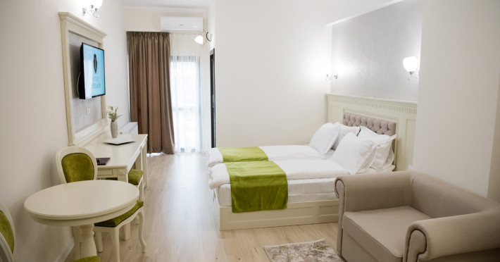 Hotelul este amplasat in centrul statiunii Baile Olanesti. Facilitati hotel: 52 camere si 4 apartamente, restaurant, 12 centre de relaxare, wellness, terapie și fitness (piscina cu apa dulce, piscina cu apa sarata, piscina si loc de distractii acvatice pentru copii, sauna, jacuzzi, sala fitness), parcare, internet. Facilitati camere: camere de nefumatori, seif, smart TV, telefon, sistem propriu de incalzire si aer conditionat, minibar, uscator par, halat, papuci de baie, cosmetice de baie. Apartamentele sunt situate la ultimul etaj si dispun de o terasa privata cu jacuzzi.Datorita dinamicitatii domeniului disponibilitatea ofertelor se modifica de la un moment la altul. De aceea ofertele sunt valabile in limita locurilor disponibile. Agentia nu este responsabila pentru eventualele neconcordante care pot aparea intre informatiile privind tarifele si alte detalii din site si informatiile primite in agentie. In aceste cazuri vor avea prioritate, intotdeauna, informatiile primite in agentie.