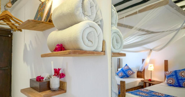 Camerele au mobilier in stil swahili, iar băile sunt dotate cu dus si articole de toaletă gratuite. Printre facilitătile suplimentare disponibile se numără un ventilator.