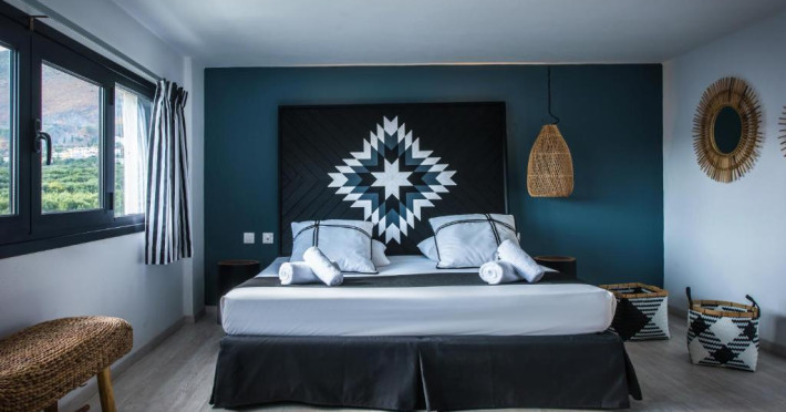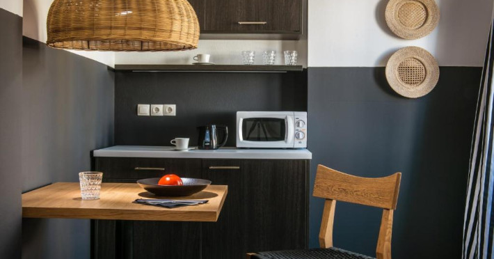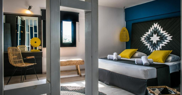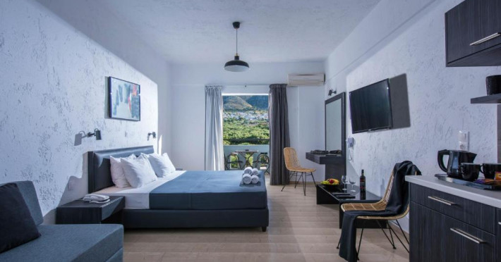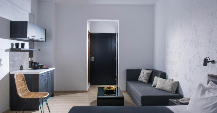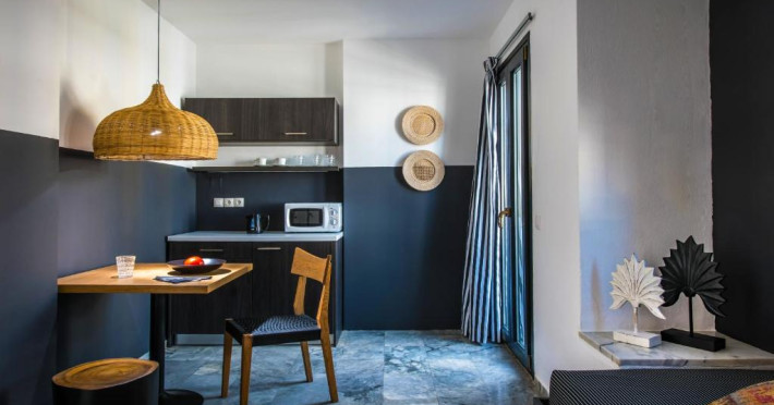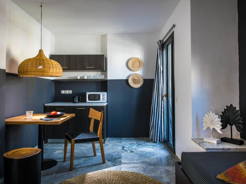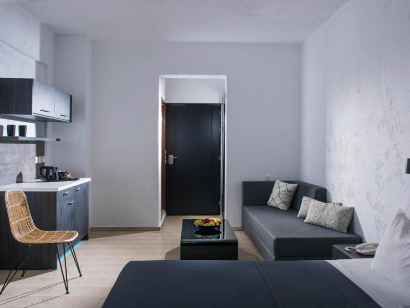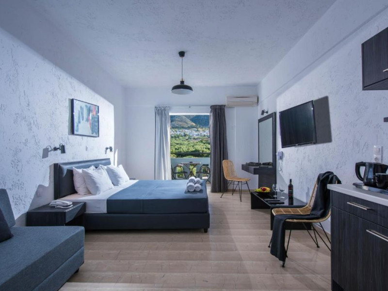 Fiecare unitate de cazare de la Indigo Inn Hersonissos este decorată modern, avand aer condiționat și vedere la orașul Hersonnisos. Toate pun la dispoziție TV prin satelit, minibar, masă, tacamuri, ceainic, aparat de cafea și uscător de păr. Baia include dus.
