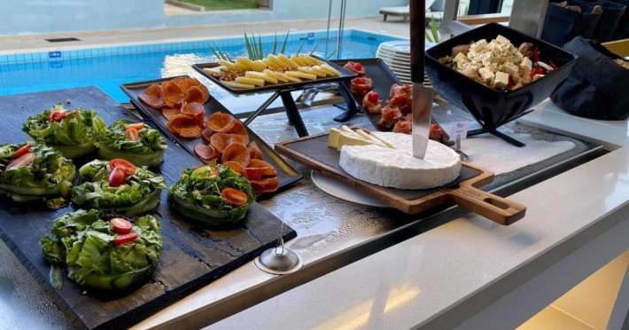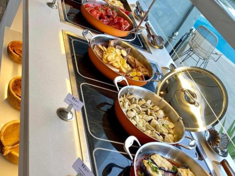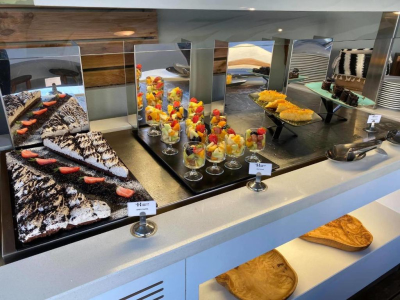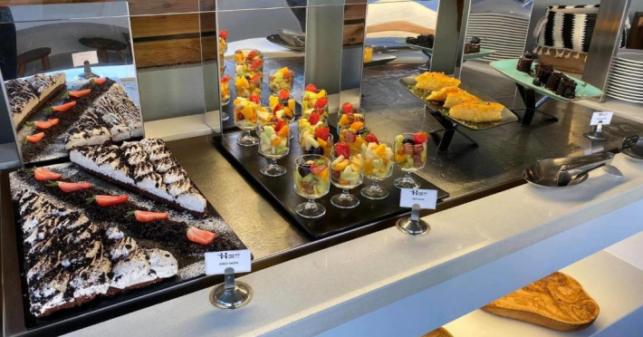 Proprietatea oferă un restaurant principal care servește delicatese mediteraneene și internaționale in stil bufet. Restaurantul à la carte Indigo oferă preparate inspirate din bucătăria italienească și cea grecească.
