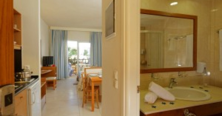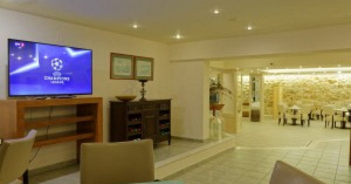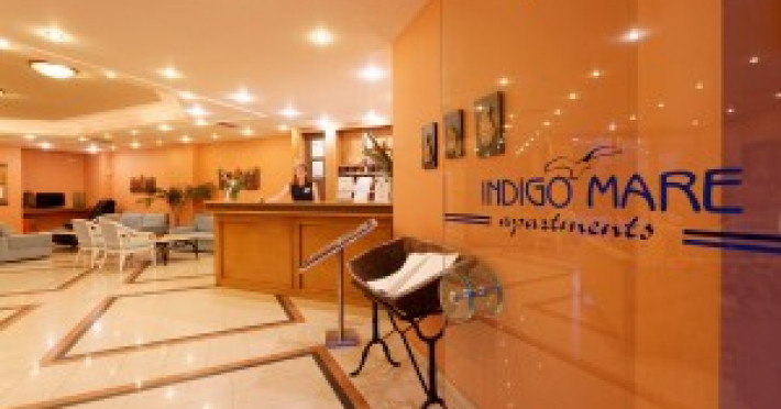 he complex consists of studios, apartments and maisonettes (88 in total). The guests enjoy the luxurious environment, the friendly atmosphere and the famous Cretan hospitality.Indigo Mare Platanias Hotel offers a outdoor swimming pool, outdoor children’s swimming pool, sauna, recreation area including snooker and table-tennis room, underground parking area, mini-market with traditional Cretan specialties, selected wines and all the necessary beach equipment. The blend of the swimming pool with the elegant pool bar, just next to the Platanias beach, offers the opportunity to relax and enjoy the sunrise and sunset amidst the magnificent blue of the Cretan sea.Start your day with a delicious breakfast with a wide variety of fresh fruits and juices, Greek yogurt, honey, rusks, handmade cakes, biscuits and sweets and international breakfast favorites such as sausages, cheeses and eggs. There is also the Cretan corner available with Cretan cheese, apaki and herbs.