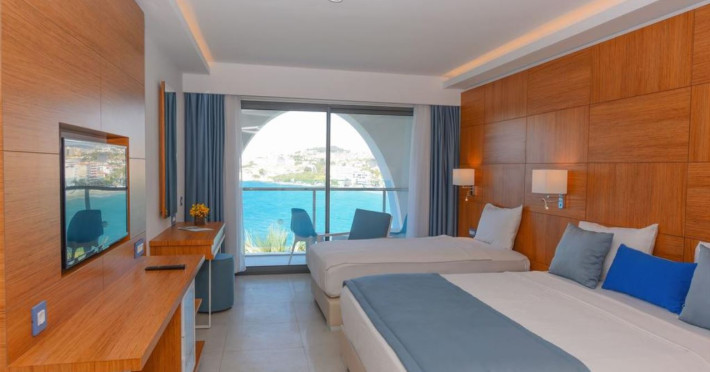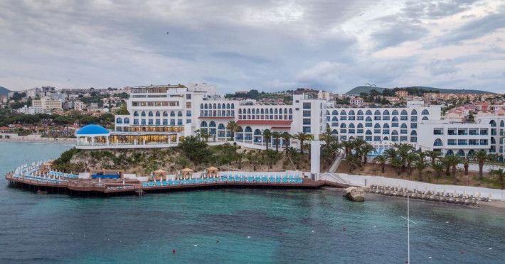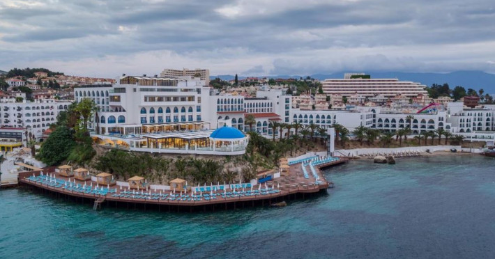 Localizare Hotelul este situat in statiunea Kusadasi, la 14 km de Efes si la 75 km de Izmir. Centrul orasului Kusadasi este la 4 km de proprietate. Hotelul dispune de 311 camere care sunt dotate cu aer conditionat, uscator de par, televizor si mini-bar. Pe langa restaurantul principal care serveste preparate internationale, hotelul mai detine si un restaurant a la carte cu specific italian. Cele 6 baruri servesc o varietate de bauturi racoritoare si bauturi alcoolice locale. Plaja este in imediata apropiere a hotelului si este o plaja cu nisip dotata cu sezlonguri si umbrele de soare. Copii se pot bucura de piscina exterioara, mini-club si un aqua park. Facilitati hotel La Infinity By Yelken Kusadasi oaspeții au la dispoziție 2 restaurante unde pot savura mâncăruri delicioase, în stil bufet sau à la carte. Preparate din bucătăria internațională și italiană sunt oferite zilnic la micul dejun, prânz și cină. Masa poate fi servită atât în interior, cît si în aer liber, pe terasă, în funcție de vreme. 5 baruri sunt disponibile cu o ofertă variată de băuturi răcoritoare și alcoolice. În cadrul proprietății există și o cafenea ideală pentru o gustare rapidă. Din facilitățile oferite de proprietate nu lipsește centrul de wellnes și spa, unde oaspeții se pot relaxa la masaj sau la saună. Jacuzzi-ul și baia turcească fac parte din oferta variată de servicii pe care le propune centrul spa. În cadrul proprietatății există piscină interioară pentru lunile mai reci sau pentru zile toride, precum și piscină exterioară unde oaspeții se pot relaxa și bronza în voie. Piscina exterioară este prevăzută cu șezlonguri confortabile, prosoape și umbrele de soare. Proprietatea are o piscină care oferă o vedere panoramică asupra întregii zone Infinity By Yelken Kusadasi dispune de aqua park, ceea ce oferă un plus de amuzament copiilor, dar și adulților. Facilitati camere Sunt disponibile 291 camere. Oaspeții au la dispoziție serviciul de room service pentru a servi masa sau diverse băuturi. În camere există baie cu cadă sau duș prevăzută cu foehn. Unele camere au balcon cu vedere la mare, unde oaspeții pot admira apusul sau răsăritul soarelui. Camerele luminoase de la Infinity By Yelken Kusadasi sunt dotate cu aer condiționat și Tv cu canale prin satelit. Oaspeții au acces gratuit la serviciul Wi-fi în camere. Curățenia in cameră se face zilnic. Proprietatea oferă camere pentru familie cu o suprafață mai mare și un număr mai mare de paturi față de cele standard.Datorita dinamicitatii domeniului disponibilitatea ofertelor se modifica de la un moment la altul. De aceea ofertele sunt valabile in limita locurilor disponibile. Agentia nu este responsabila pentru eventualele neconcordante care pot aparea intre informatiile privind tarifele si alte detalii din site si informatiile primite in agentie. In aceste cazuri vor avea prioritate, intotdeauna, informatiile primite in agentie.