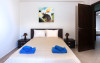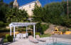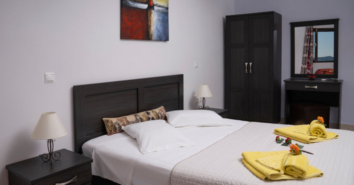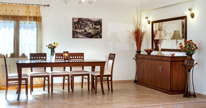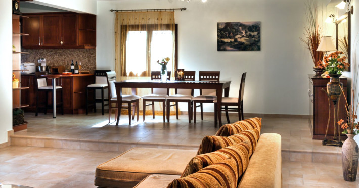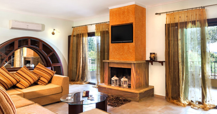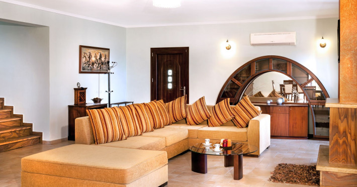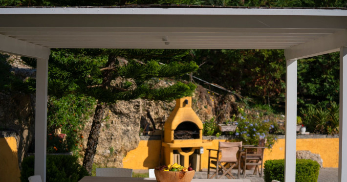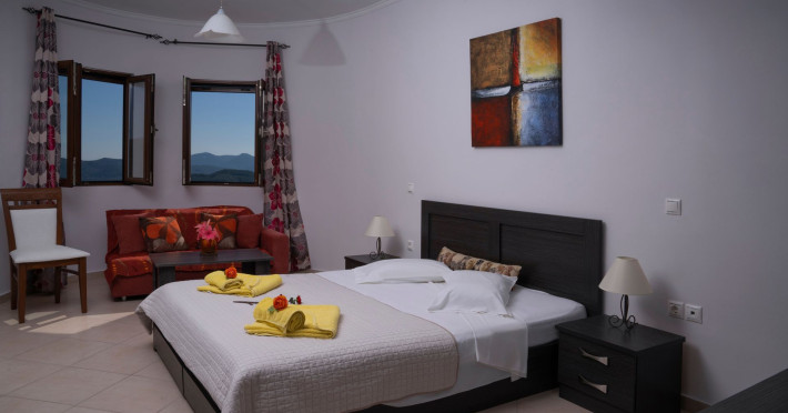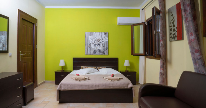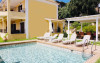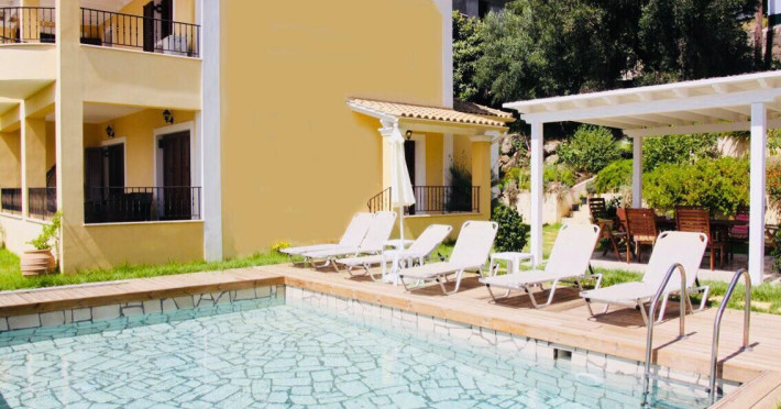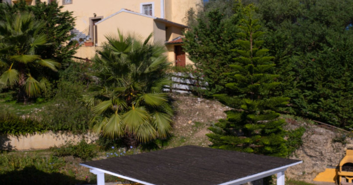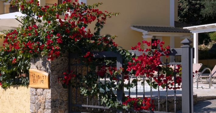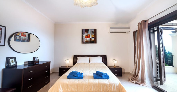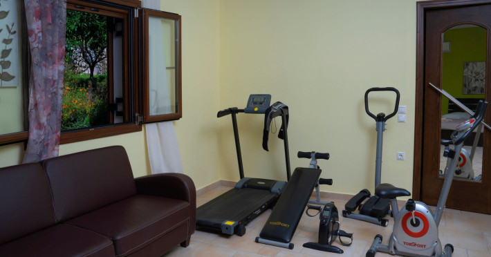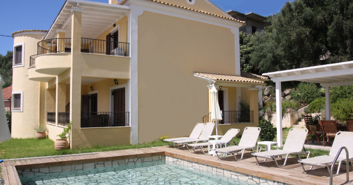 Infinity Villa is situated right in the middle of the island and close to its West side. Its strategic location makes it ideal for travelers keen to explore all the “must visit” attractions and beaches of the largest and most diverse among the Ionian Islands. Built in the heart of the Traditional village of Kato Pavliana, right below the village’s church and campanile, it is completely eye-protected of the main road, thus providing relaxation and tranquility. It is surrounded by unspoiled nature and its revitalizing sounds and offers uninterrupted 180 views to the open countryside, clear Corfiot sky and the vast olive groves onto Paramonas. The renowned sandy beach of Agios Gordios with its crystal clear waters and stunning sunset is at 5 km (9 minute drive through untouched green scenery). The family resort beach of Paramonas is at 5 km (10 minute drive to the other side). The villa is built in respect to the traditional Corfiot Architectural style and features extensive grounds both indoors and outdoors. It can accommodate up to 8 guests with 4 bedrooms and 3 bathrooms, and is an idyllic place for a relaxing holiday for all the family or for groups of friends keen to leave everything behind for a while. The villa is furnished with dark wooden furniture and minimal, yet elegant decoration. Features very spacious rooms and indoor spaces, huge open plan kitchen (fully equipped with brand new electrical appliances and anything you need for preparation of meals) with dining area that can easily sit 10 guests, large living room with adobe fireplace, large verandas (furnished, with outdoor dining area) that open out to the countryside, large and brand new bathrooms and a small gym (for those who wish to leave everything behind except their daily work-out!). The interior marble stairs lead to the upper floor where there are 3 bedrooms and another 2 bathrooms that open to a share shaded-pergola veranda with stunning views to the countryside and the surroundings. The garden is well maintained and has a small dip pool and sun loungers in order for the tenants to luxuriate in their beautiful surroundings. There is a gazebo and another outdoor sitting/dining area behind the dip pool and a small organic vegetable farm, which the owner grows with great passion. Whatever grows in the garden is for its residents, so feel free to pick anything that suits your daily menu and offer yourselves the experience to taste vegetables as they should taste for a while! Parking for 2 car seats is also available within the property premises. Although quiet and peaceful there are many activities, attractions and places of interest within a few minutes’ drive, so a car is essential for those who want to have a complete taste of Corfu!BedroomsA twin bedroom downstairs (which is also used as the gym) with a small bathroom right outside. All main bedrooms are located in the upper floor. The marbles staircase leads to the upper floor where there are 3 bedrooms. The Master bedroom has a queen size matrimonial bed and en suite bathroom both with shower cabin and a Jacuzzi bathtub and 2 water basins. Another 2 bedrooms (matrimonial beds) downstairs are locate in the same floor, which share another bathroom (with bath tub). Both the master bedroom and one double open to a large, furnished shaded-pergola veranda with stunning views to the open countryside and vast olive groves. Minimal modern furniture and utilities, together with ample space and bright sunlight offer a relaxing decoration and make you want to stay in bed! One of the bedrooms has 2 windows that offer 180 stitch view from inside.Bathrooms1 bathroom downstairs, with a washing machine which is essential if one stays long, and another 2 bathrooms in the upper floor. One of them is with bath tub share between 2 double bedrooms. The other one is in the Master bedroom (en suite) and features 2 water basins, a shower cabin and a Jacuzzi bath tub.KitchenLarge, brand new, open plan fully equipped kitchen with a large dining table and enough space to sit 10 guests. Oven, large fridge/freezer, dish washer, stove, electric kettle, toaster, kitchenware & kitchen utensils, pans, kettle and anything one may need in order to prepare meals and enjoy the flavors of the local products!Living RoomThe main entrance in the ground floor opens to a large living room/dining area with a blend of modern and traditional furniture that create a relaxing environment. Large doors open onto the ground floor veranda with access to the garden and outdoor dining facilities for you to enjoy breakfast and light meals. Living rooms is air conditioned. There is also a small bathroom in the ground floor and a large room which is used as the gym when parties of residents consist of up to 6 guests. It can be used as an extra bedroom though; as it can accommodate 2 guests in single beds (most guests use it as child bedroom).Outdoor spaceLarge veranda with sitting and outdoor dining furniture. A gazebo for relaxing afternoon cocktails or tea. Built-in BBQ facilities available for a real countryside outdoor dining experience. A dip pool (small swimming pool) and sun loungers also available in order to enjoy the endless interaction of light and nature. Well maintained gardens that offer beautiful surroundings & privacy and parking space for 2 car seats. Your private (pick-your-own), small organic farm, for a real taste of Corfiot local products.Cleaning/Towels/Linen/Maid service:Maid service provided twice a week (additional days on request). Towels are also being changed twice weekly and bed linen once a week unless otherwise requested. Cooking service on daily basis (variety of local and Mediterranean cuisine) can be arranged on request.Property Facilities & Services• Self Catering Countryside Villa – sleeps 8 guests• Ground floor/ Living room, Kitchen, dining area, open terrace, bathroom (with shower)• Upper floor/ 3 bedrooms (1 en suite), 2 bathrooms (with bathtub), large furnished terr