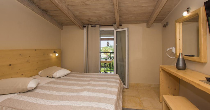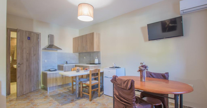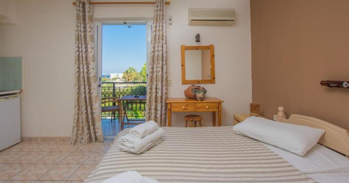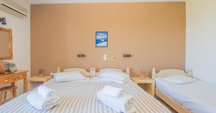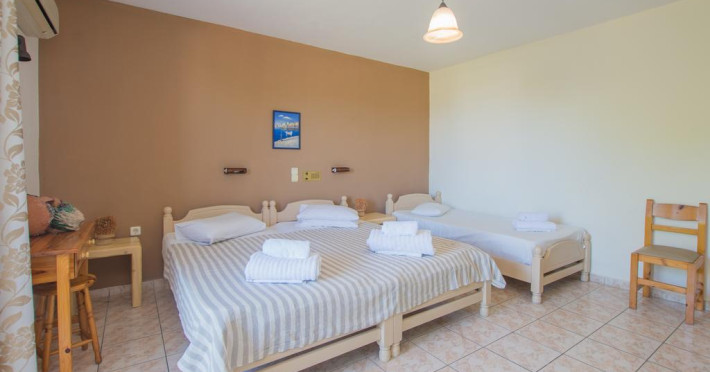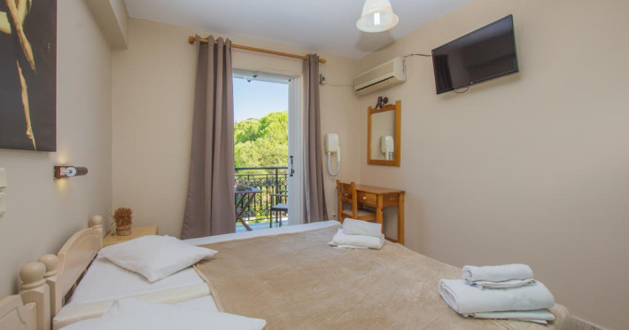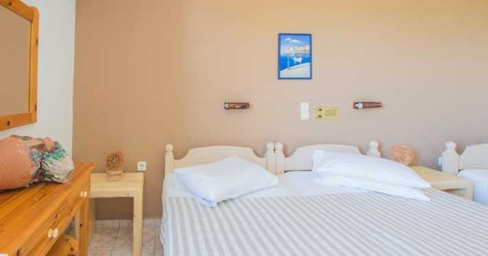 Camerele luminoase de la Iniohos Hotel sunt dotate cu aer condiționat, Tv și seif. Oaspeții au la dispoziție serviciul de room service pentru a servi masa sau diverse băuturi. În camere există baie cu cadă sau duș prevăzută cu foehn. Curățenia in cameră se face zilnic. Proprietatea oferă camere pentru familie cu o suprafață mai mare și un număr mai mare de paturi față de cele standard. Se pot rezerva de asemenea camere pentru nefumători.