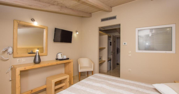 Toate camerele Hotelului Iniochos au TV si aer conditionat. De asemenea, toate includ si o chicinetă cu frigider. Unitătile de cazare au baie privată cu dus sau cadă.